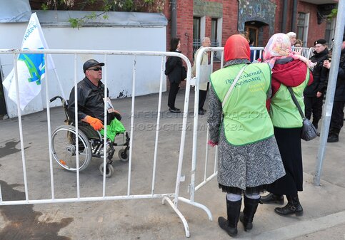 Автор: Киселев Сергей. Верующие в очереди к храму Христа Спасителя, где находится...