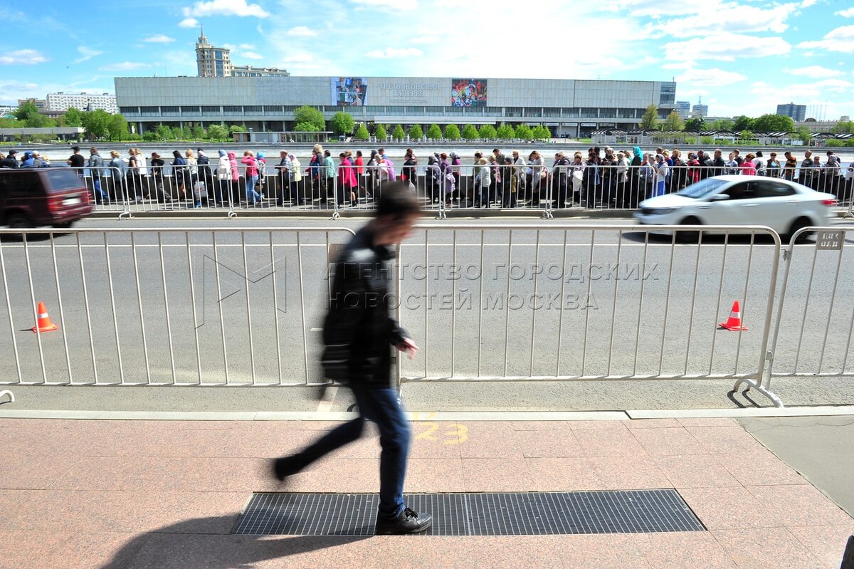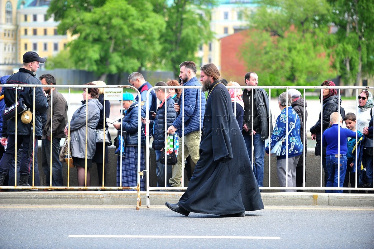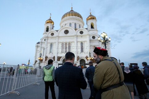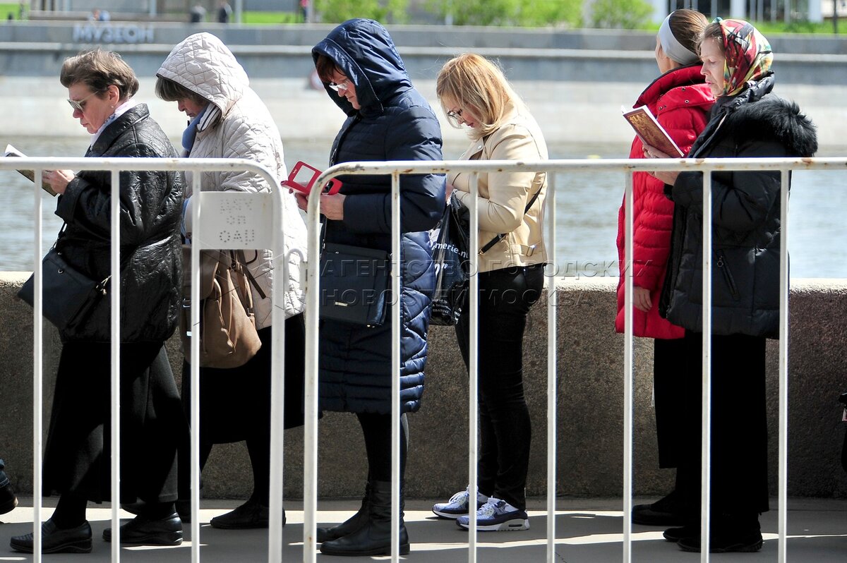 Автор: Зыков Кирилл. Верующие в очереди к храму Христа Спасителя, где находится к...