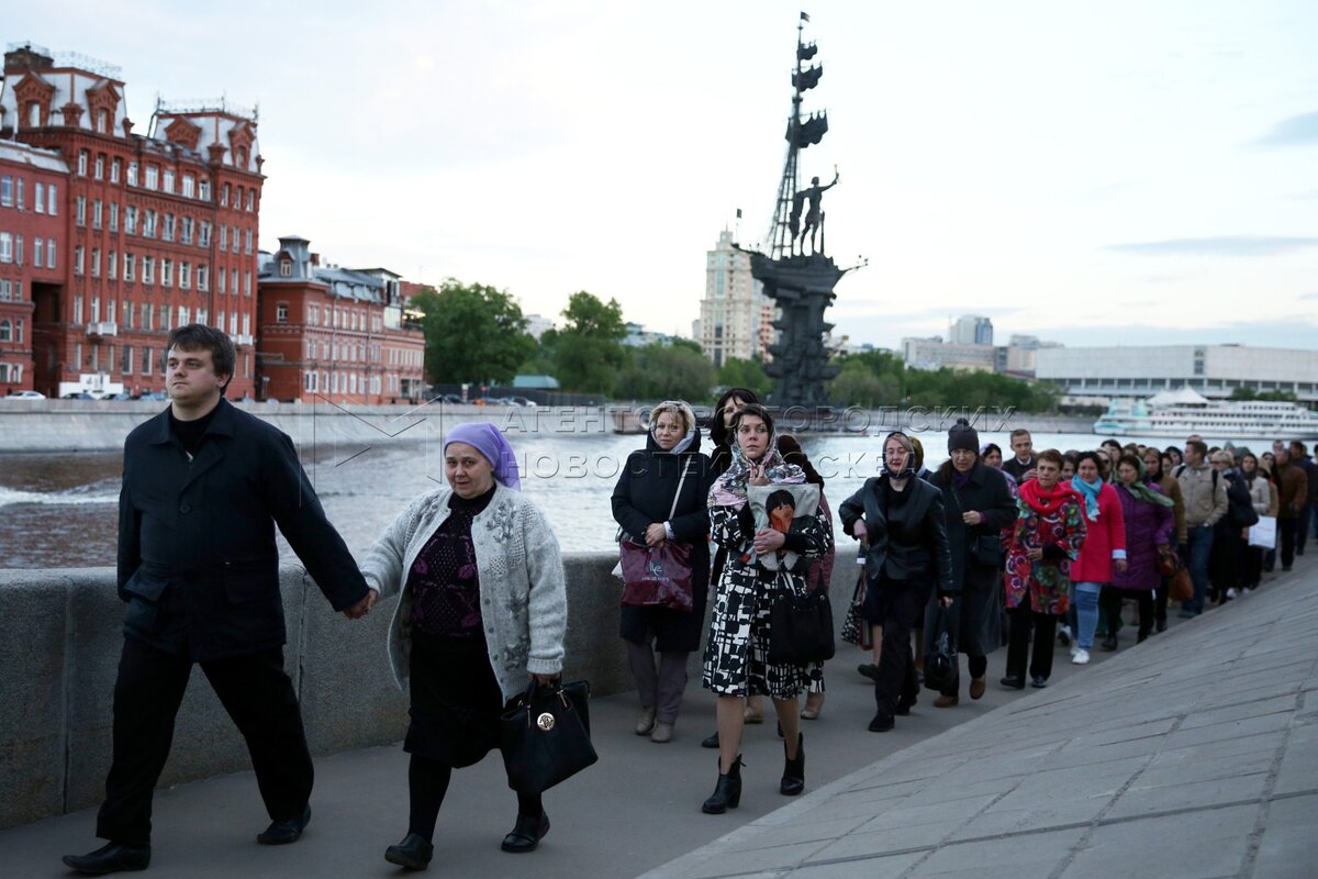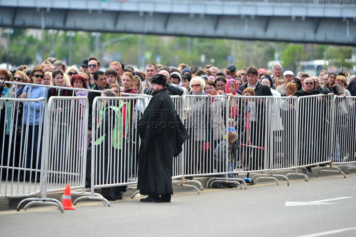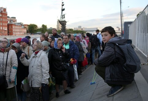 Автор: Киселев Сергей. Верующие в очереди к храму Христа Спасителя, где находится ковчег с частицей мощей святителя Николая Чудотворца.
