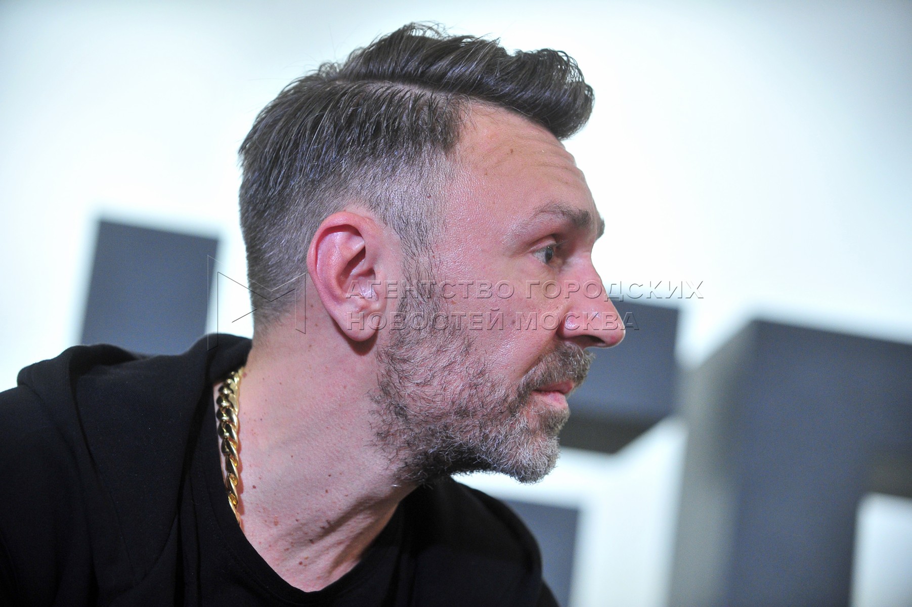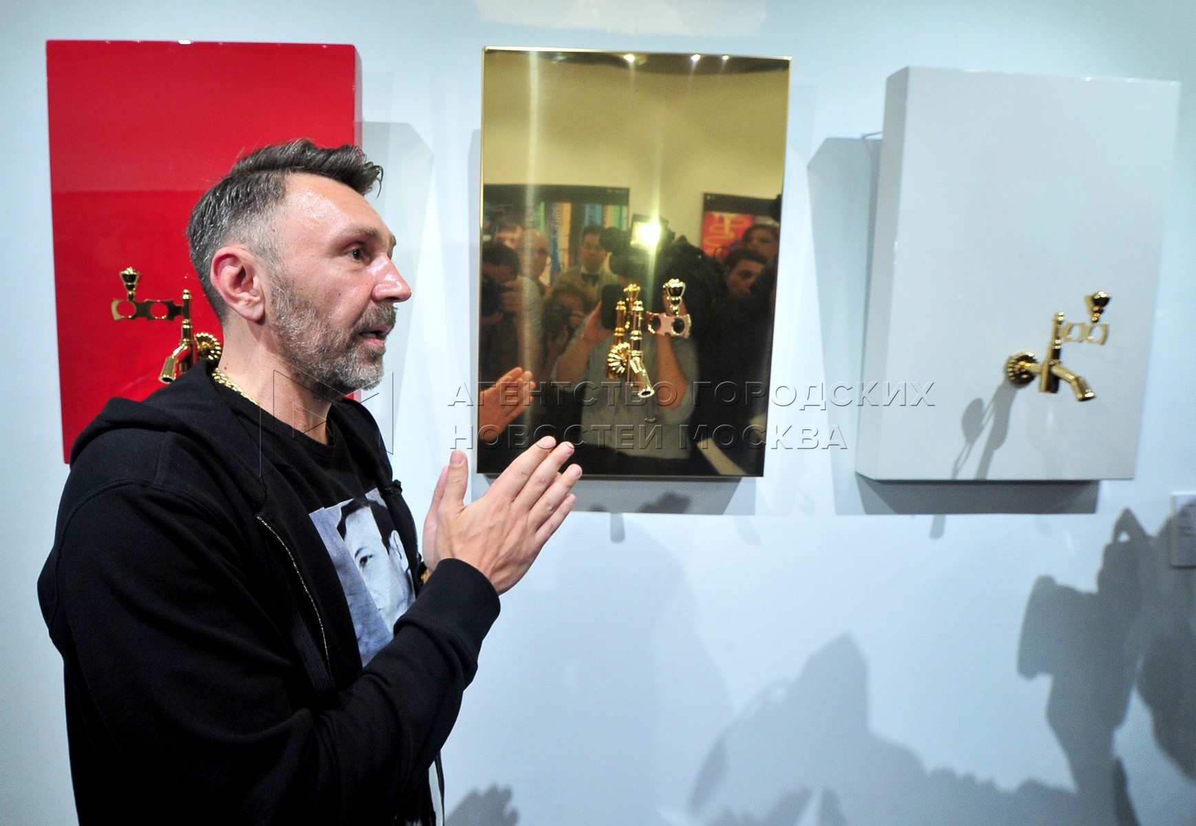 • Описание: Рок-музыкант, телеведущий, художник и композитор, лидер групп «Ленинград» и «Рубль» Сергей Шнуров на открытии своей выставки в Московском музее современного искусства
