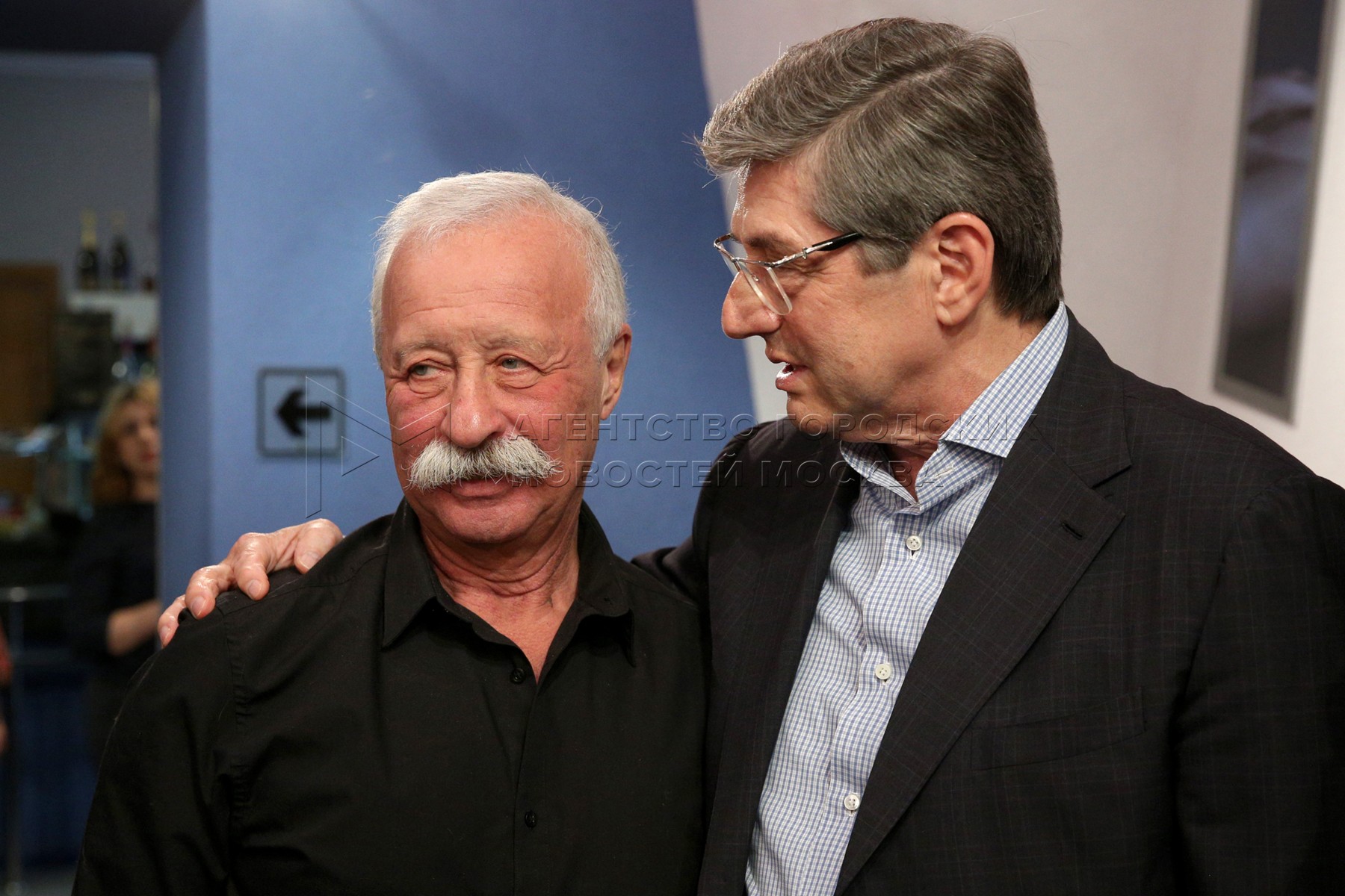 Телеведущий Леонид Якубович и юрист, писатель Александр Звягинцев (справа) на пре...