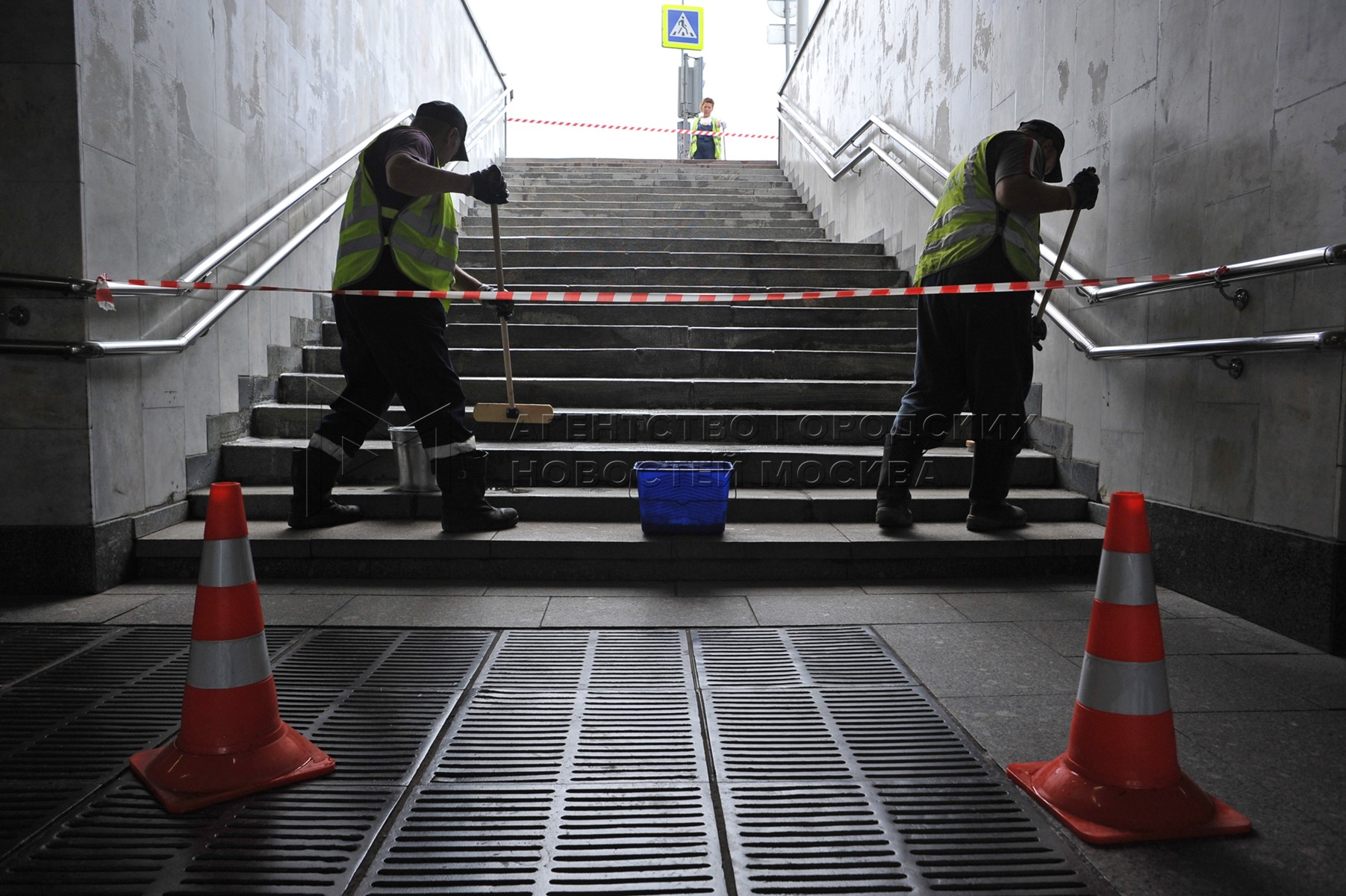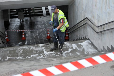 • Описание: Промывка исторических панно на подземном переходе на Пушкинской площади