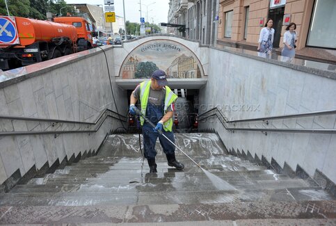Промывка исторических панно на подземном переходе на Пушкинской площади