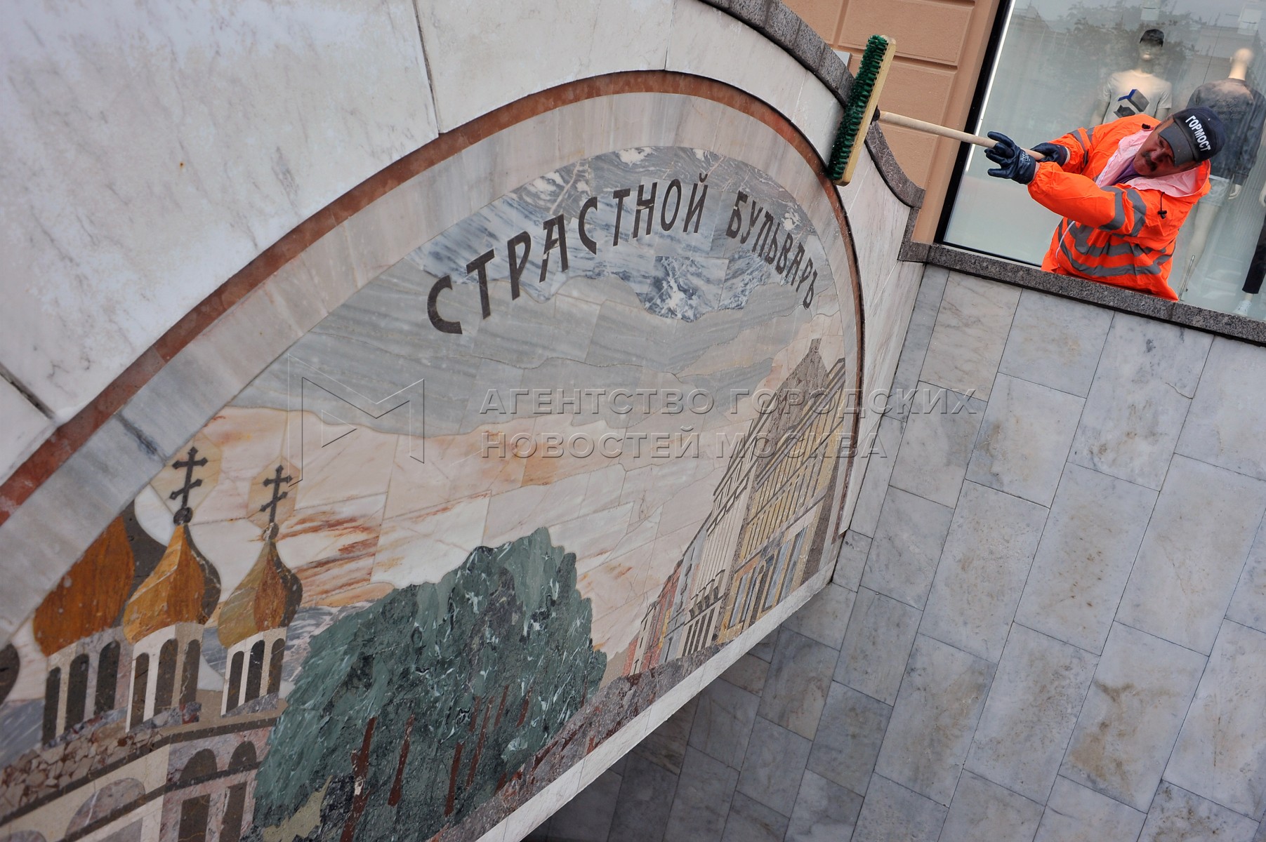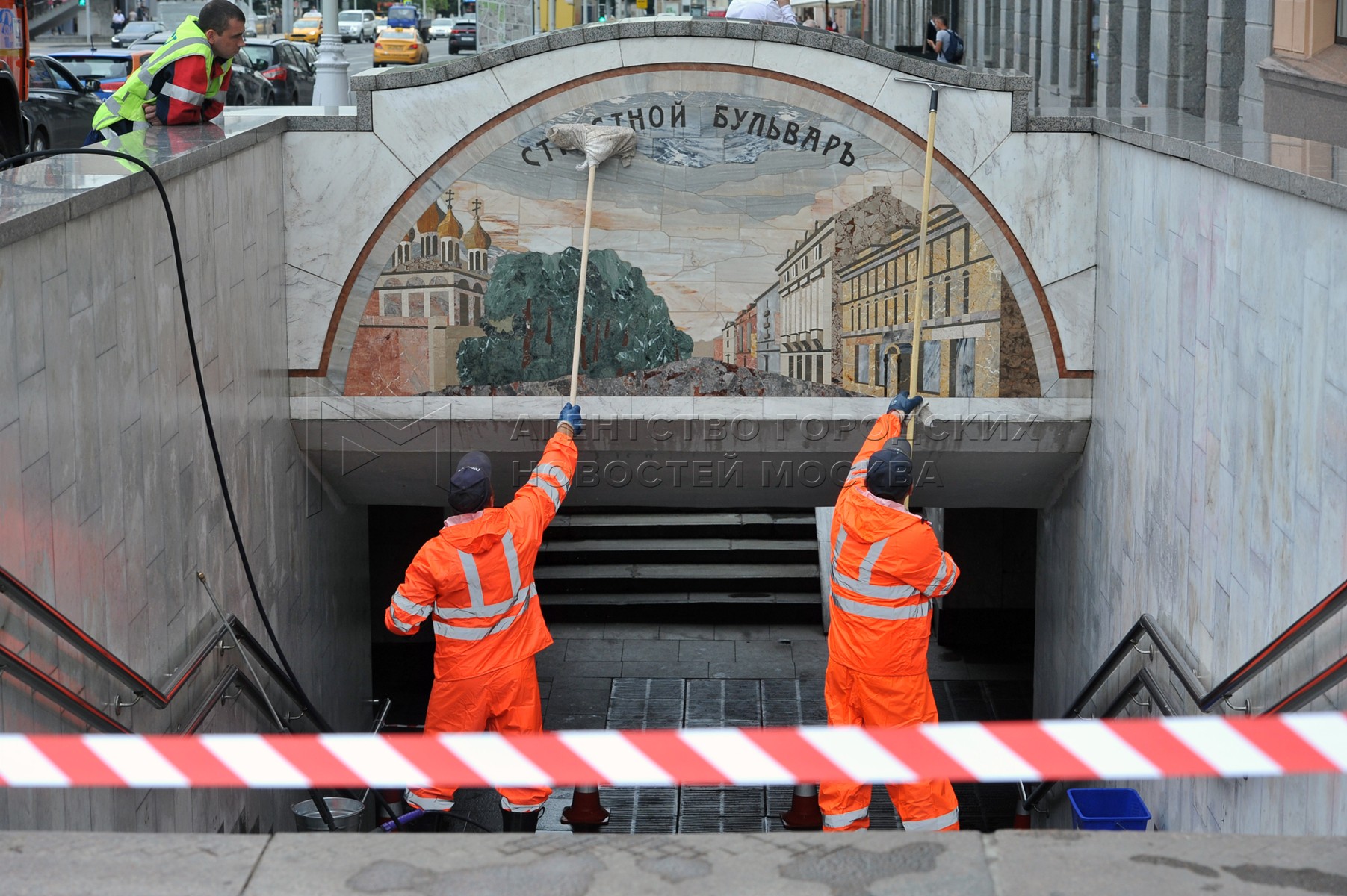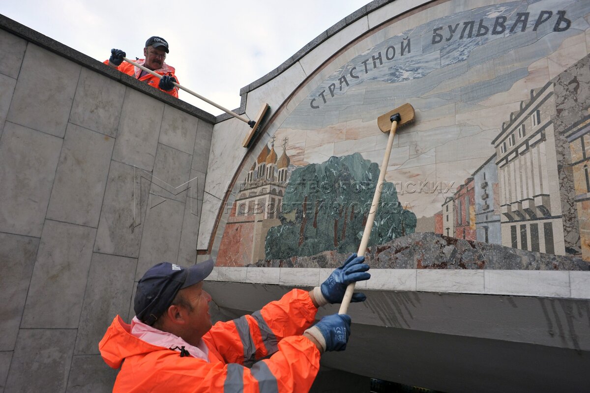 • Заголовок: Промывка исторических панно на подземном переходе на Пушкинской площади