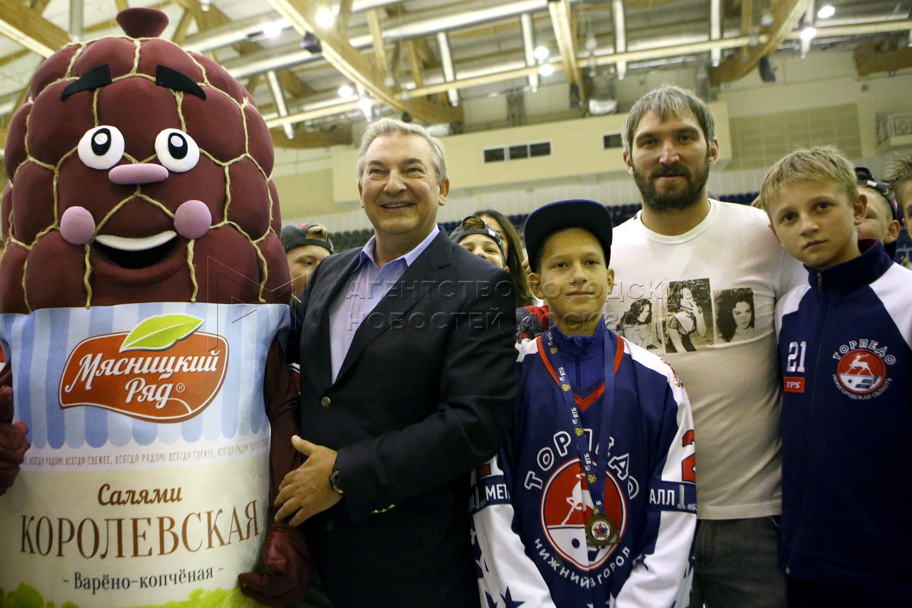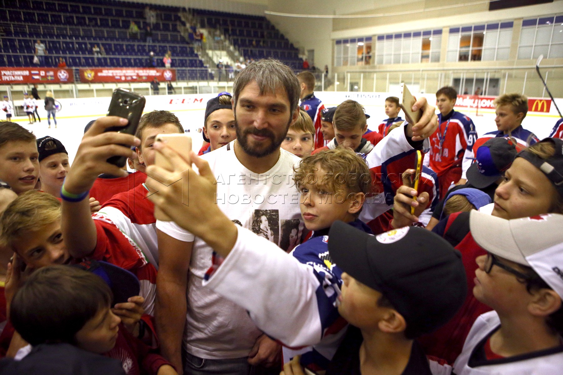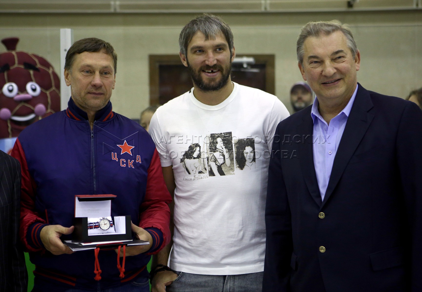 • Описание: Нападающий сборной России ​​Александр Овечкин (в центре) во время церемонии закрытия ежегодного международного турнира по хоккею «Кубок Владислава Третьяка»