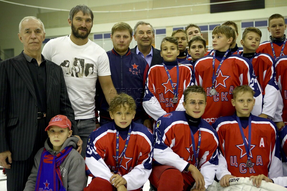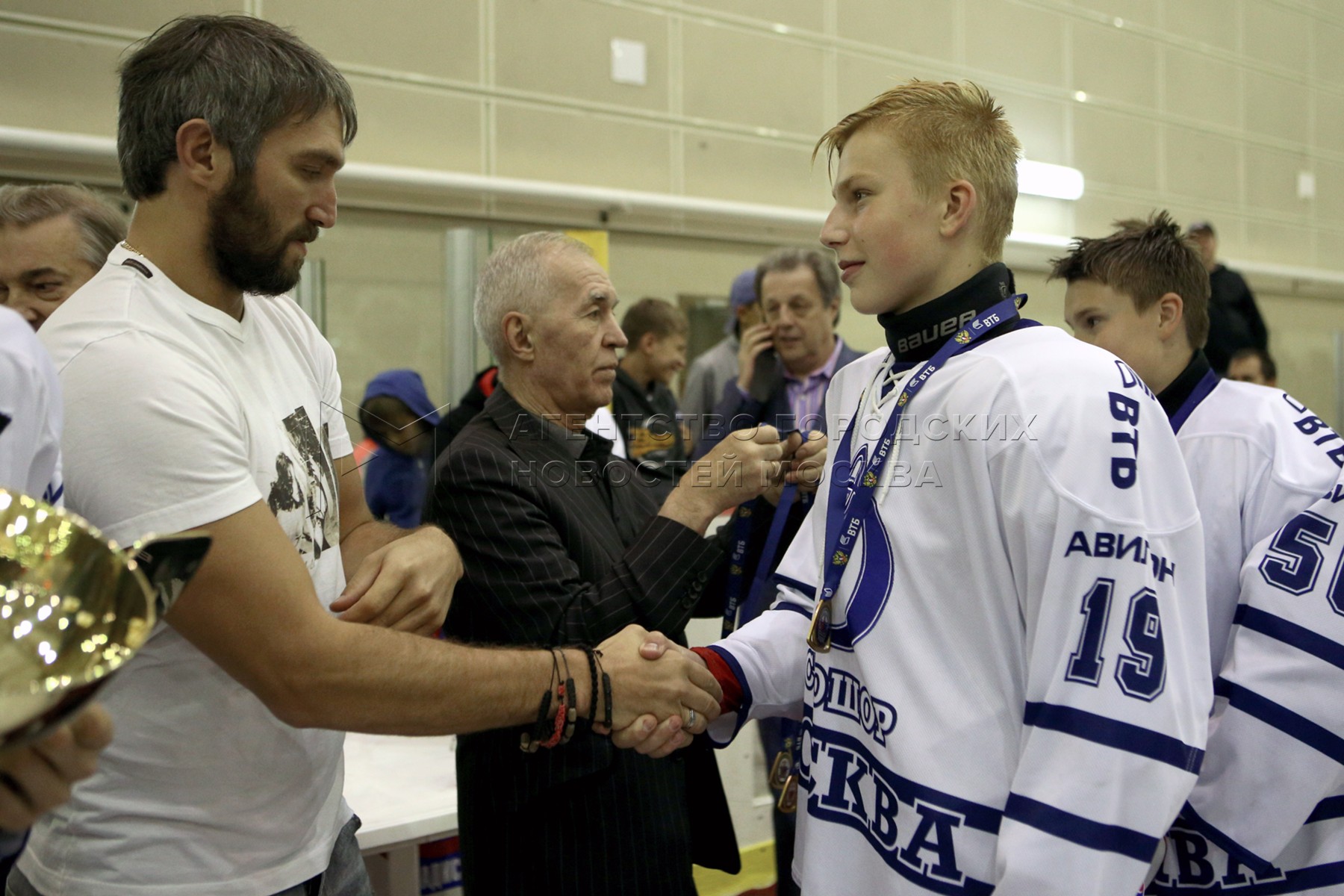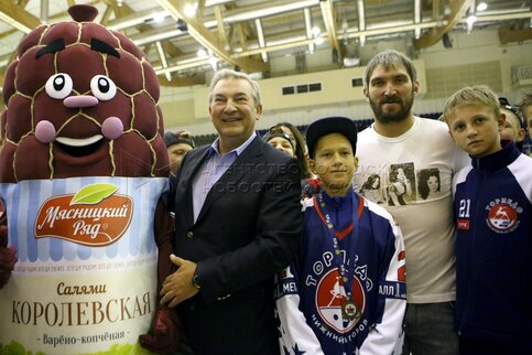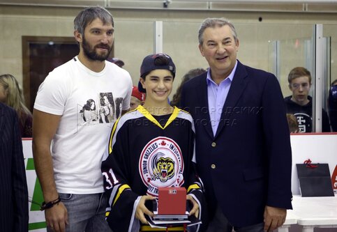 Нападающий сборной России ​​Александр Овечкин (в центре), президент Федерации хок...