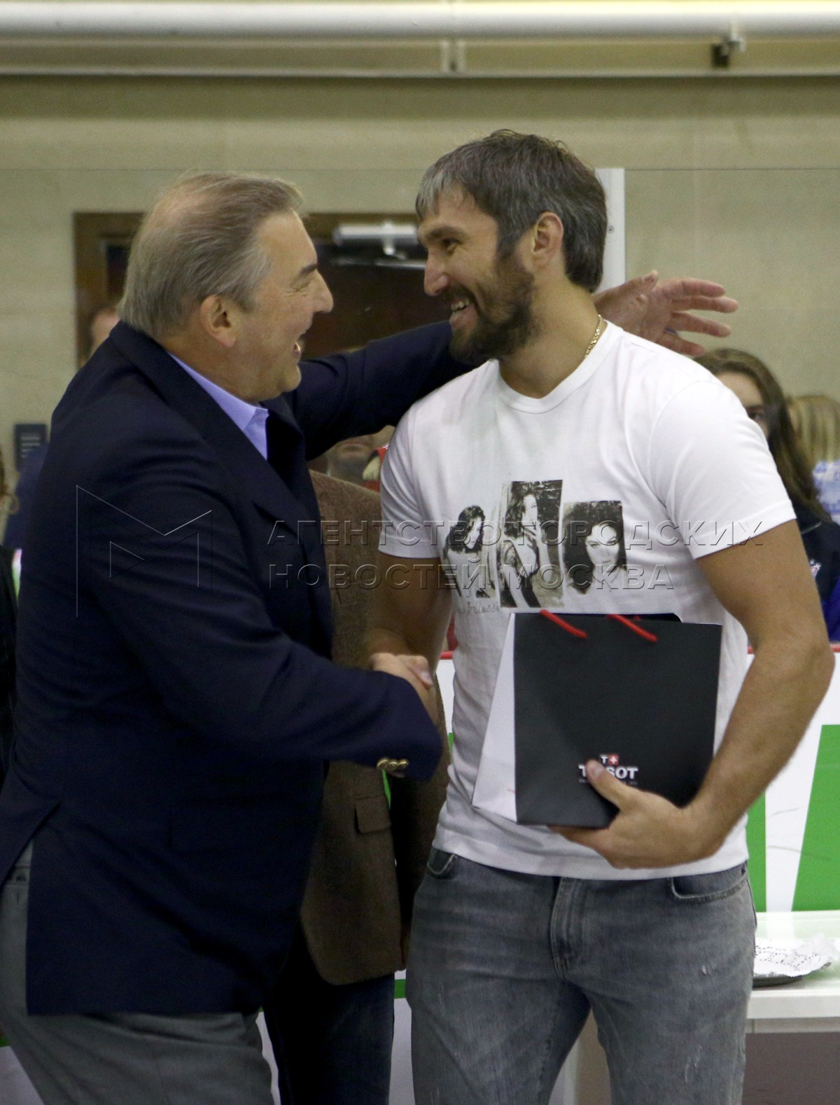 Нападающий сборной России ​​Александр Овечкин (слева), президент Федерации хоккея...