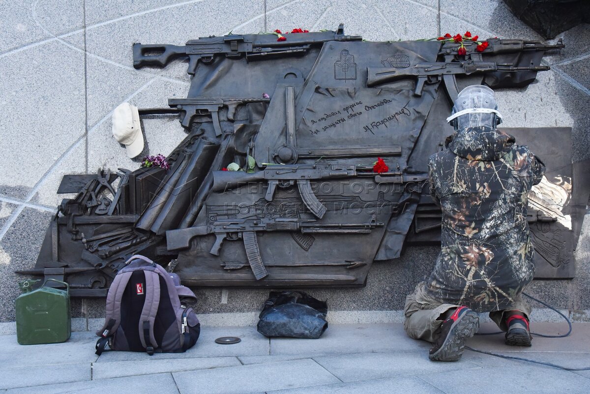 • Описание: Автор фото: Симонов Никита /портал Москва 24. Демонтаж чертежа немецким автомата StG 44 с барельефа памятника оружейному конструктору Михаилу Калашникову