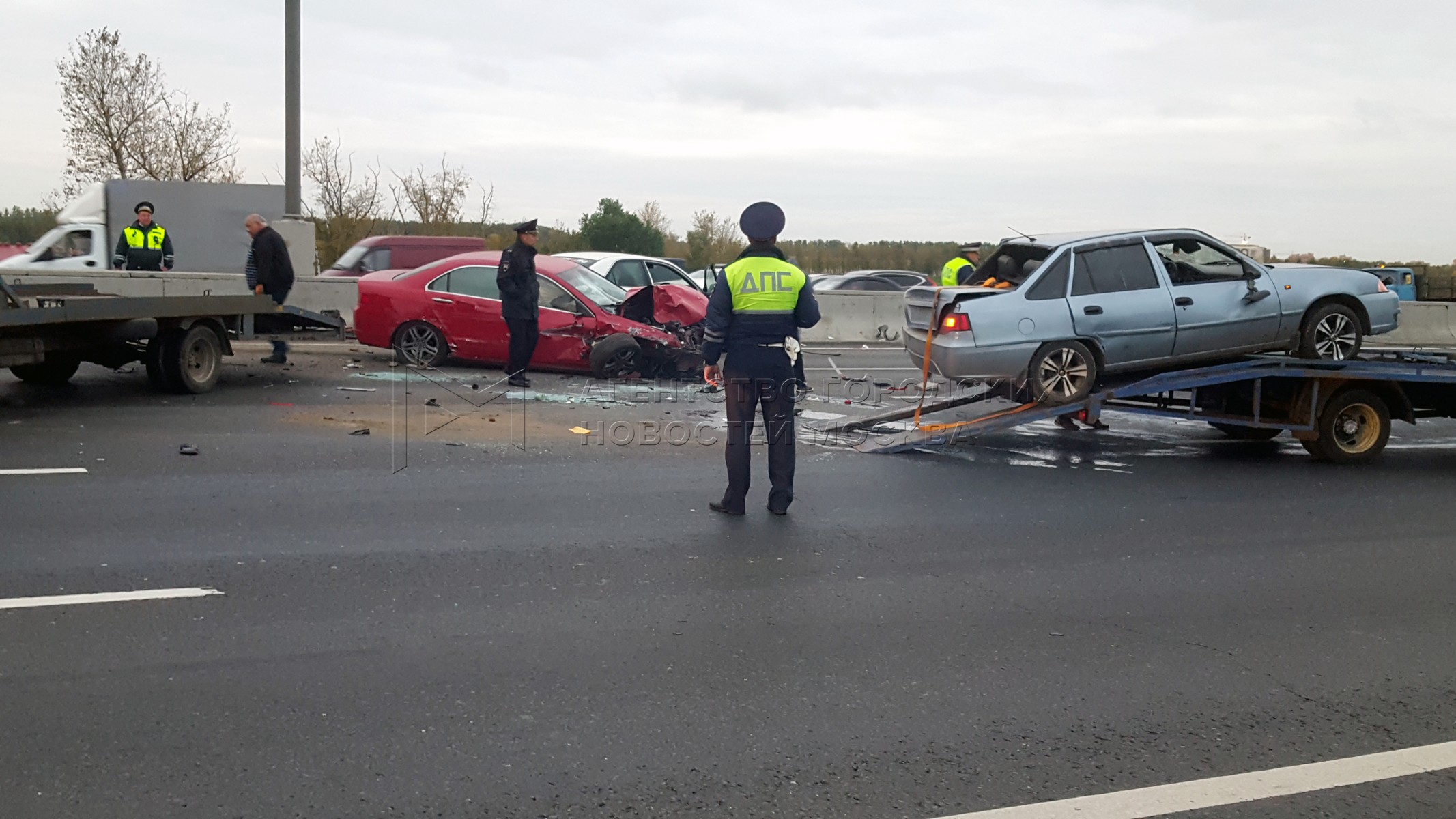 • Описание: Последствия ДТП с участием семи автомобилей на МКАД в районе Шипиловского проезда
