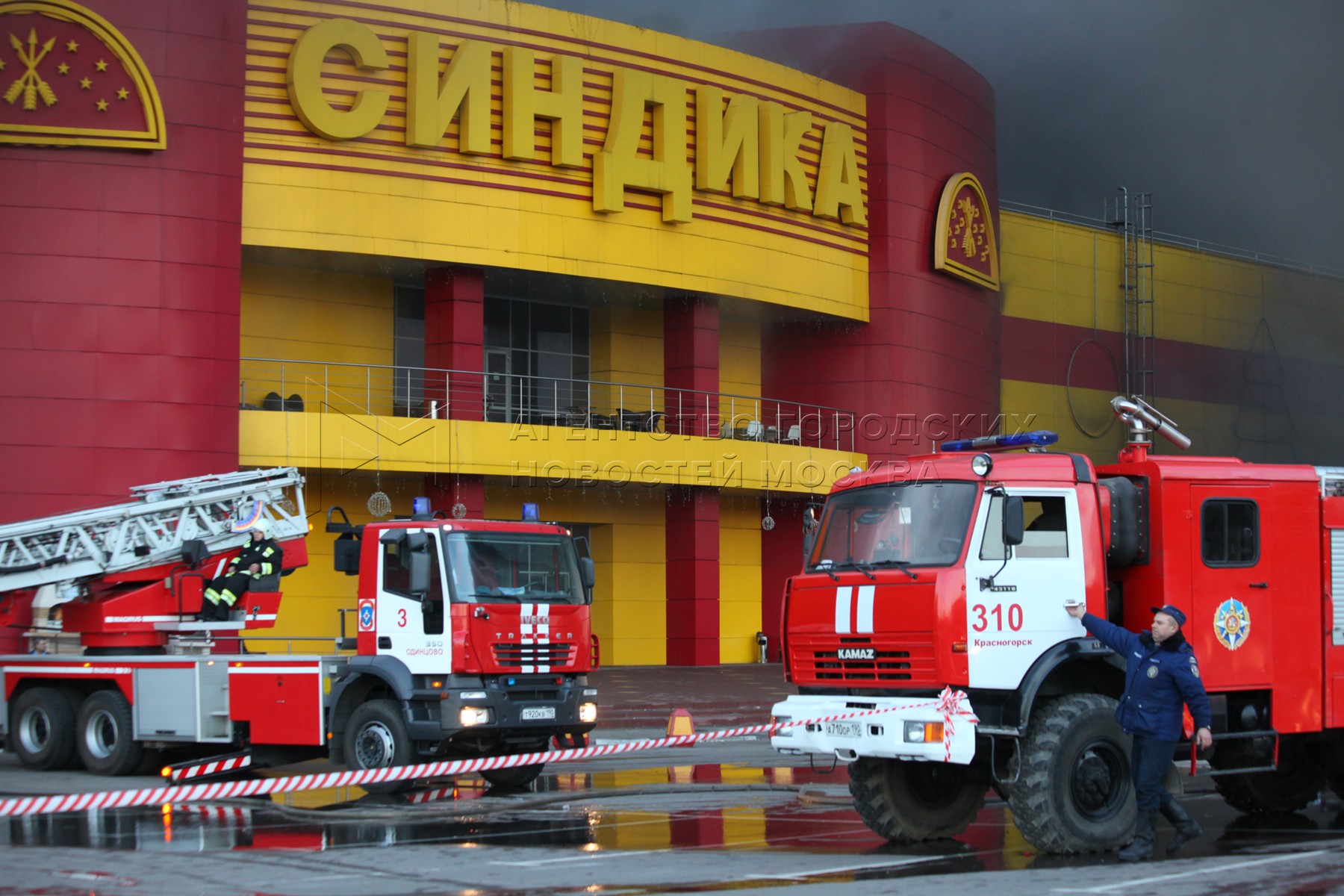 • Заголовок: Тушение пожара в торговом центре «Синдика» на МКАД