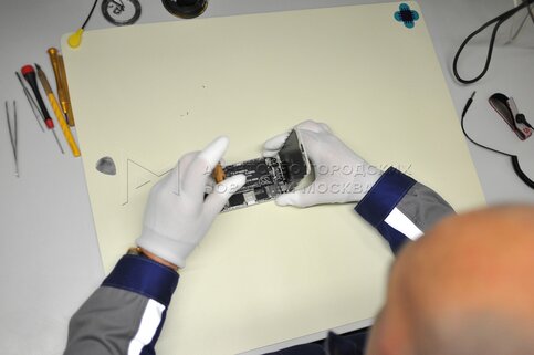 • Описание: Руководитель департамента информационных технологий города Москвы Артем Ермолаев во время открытия в Яковоапостольском пер. салона городского цифрового сервиса «Чудо техники» по ремонту аппаратуры