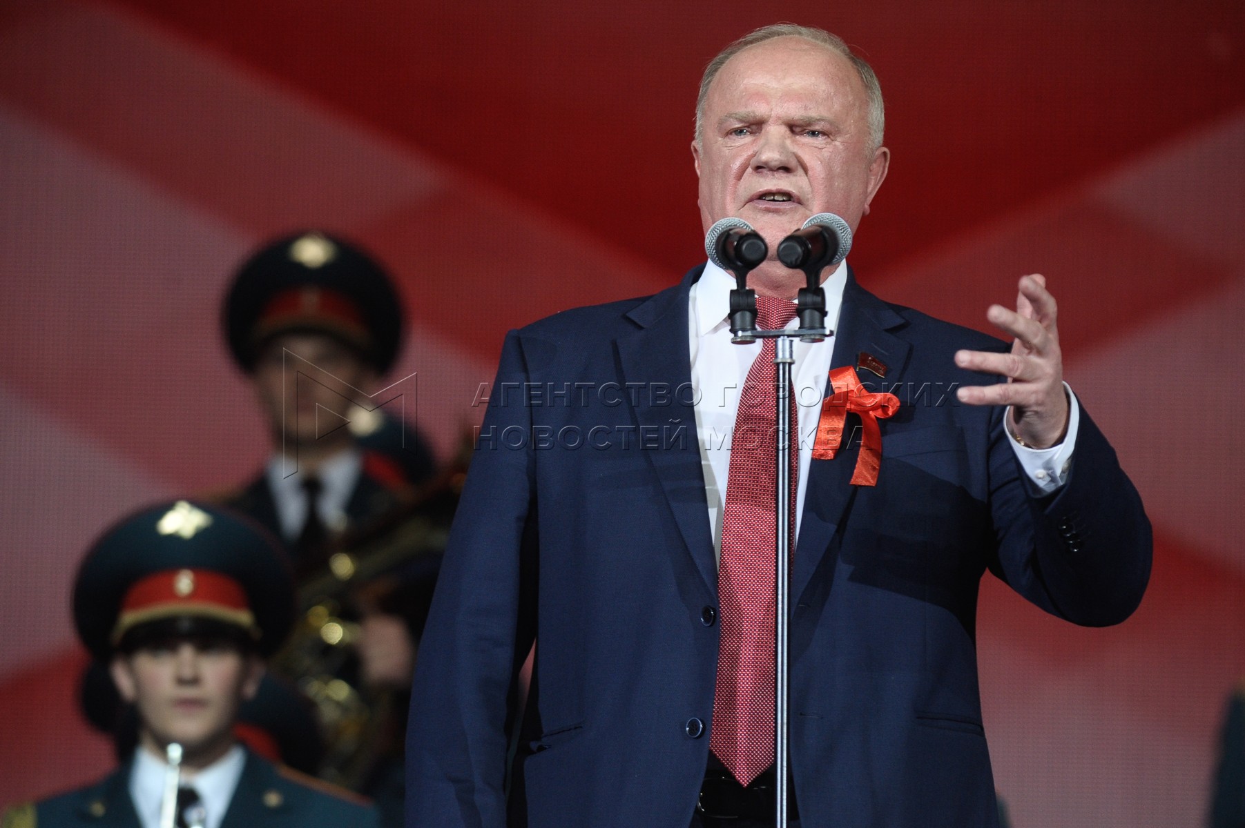 - Описание: Председатель ЦК КПРФ, руководитель фракции КПРФ в Государственной Думе Геннадий Зюганов на торжественном вечере, посвященном 100-летию Великой Октябрьской социалистической революции в концертном зале «Россия» в «Лужниках»