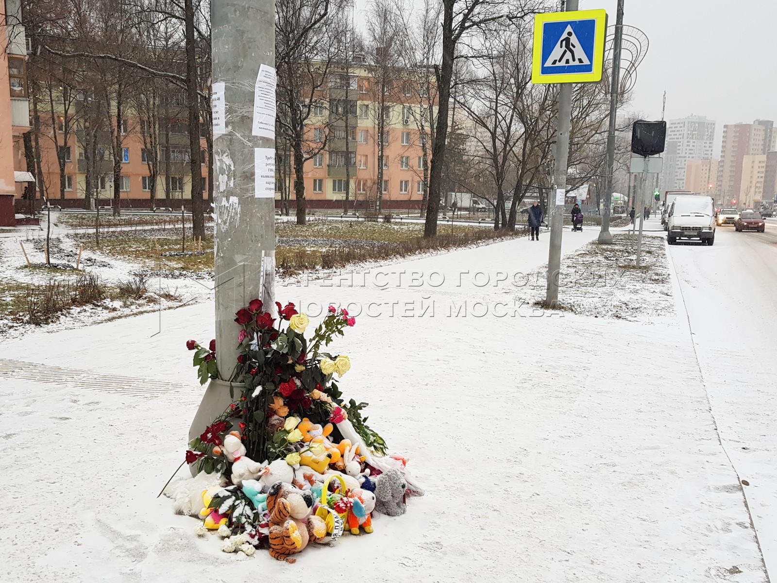 • Заголовок: Народный мемориал на месте гибели пятилетней девочки, сбитой на пешеходном переходе в ТиНАО