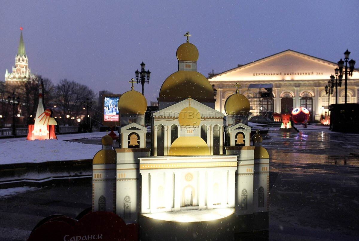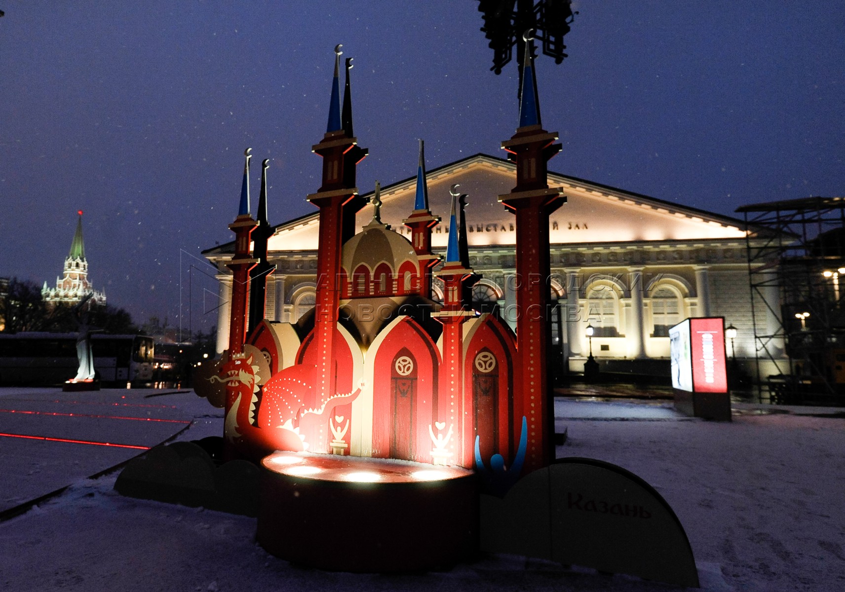 Арт-объекты перед финальной жеребьевкой чемпионата мира по футболу на Манежной площади