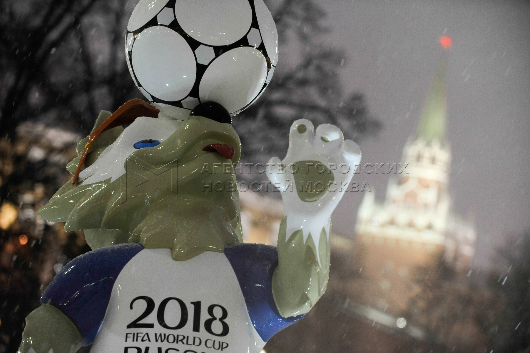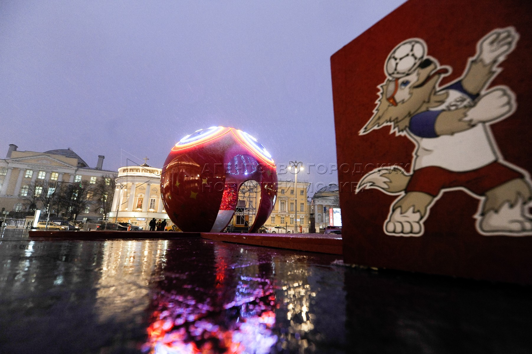 Арт-объекты перед финальной жеребьевкой чемпионата мира по футболу на Манежной пл...