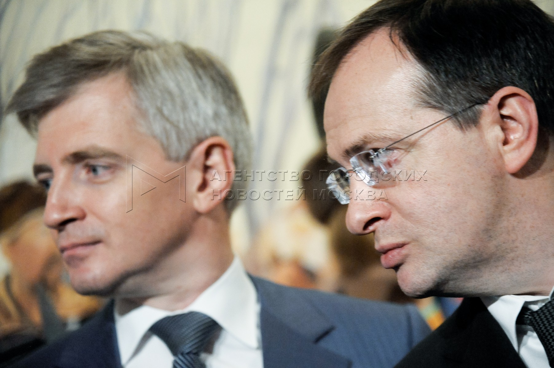 Министр культуры РФ Владимир Мединский (слева) и мэр Москвы Сергей Собянин во вре...
