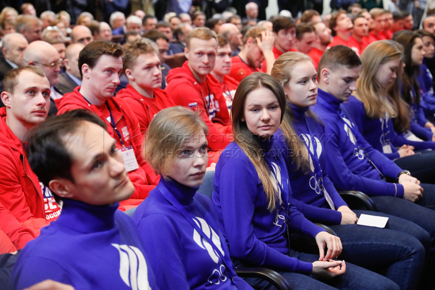 Собрание спортсменов Олимпийского комитета России в конференц-зале ОКР.