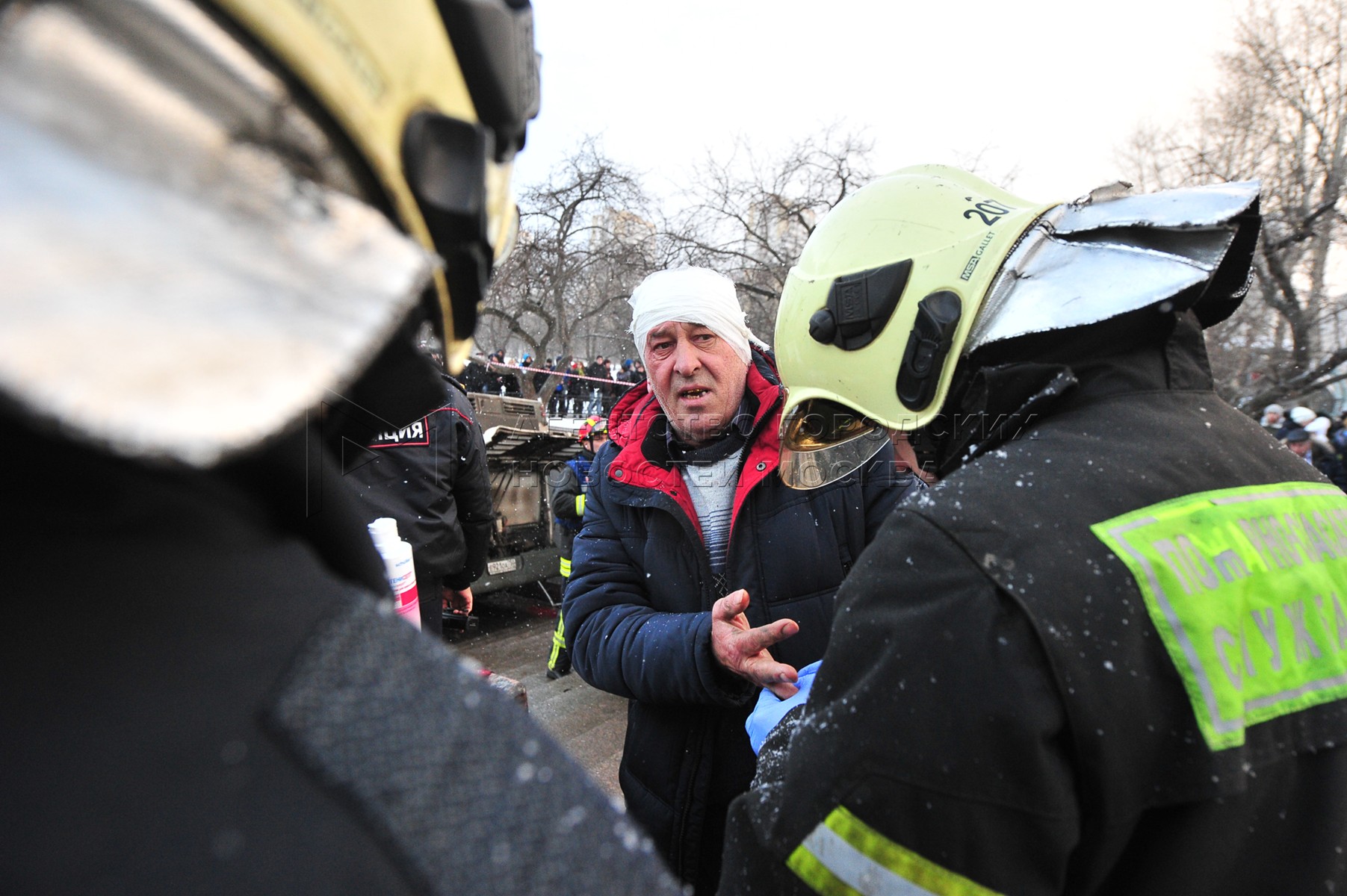 • Описание: Водитель автобуса Виктор Тихонов на месте ДТП на Кутузовском проспекте
