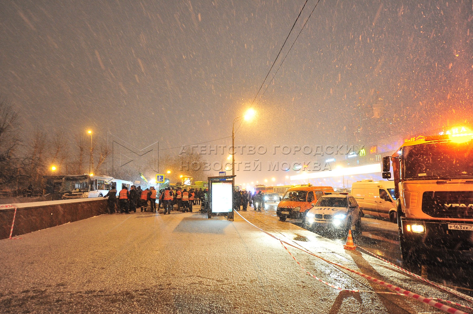 Последствия ДТП с участием рейсового автобуса на Кутузовском проспекте