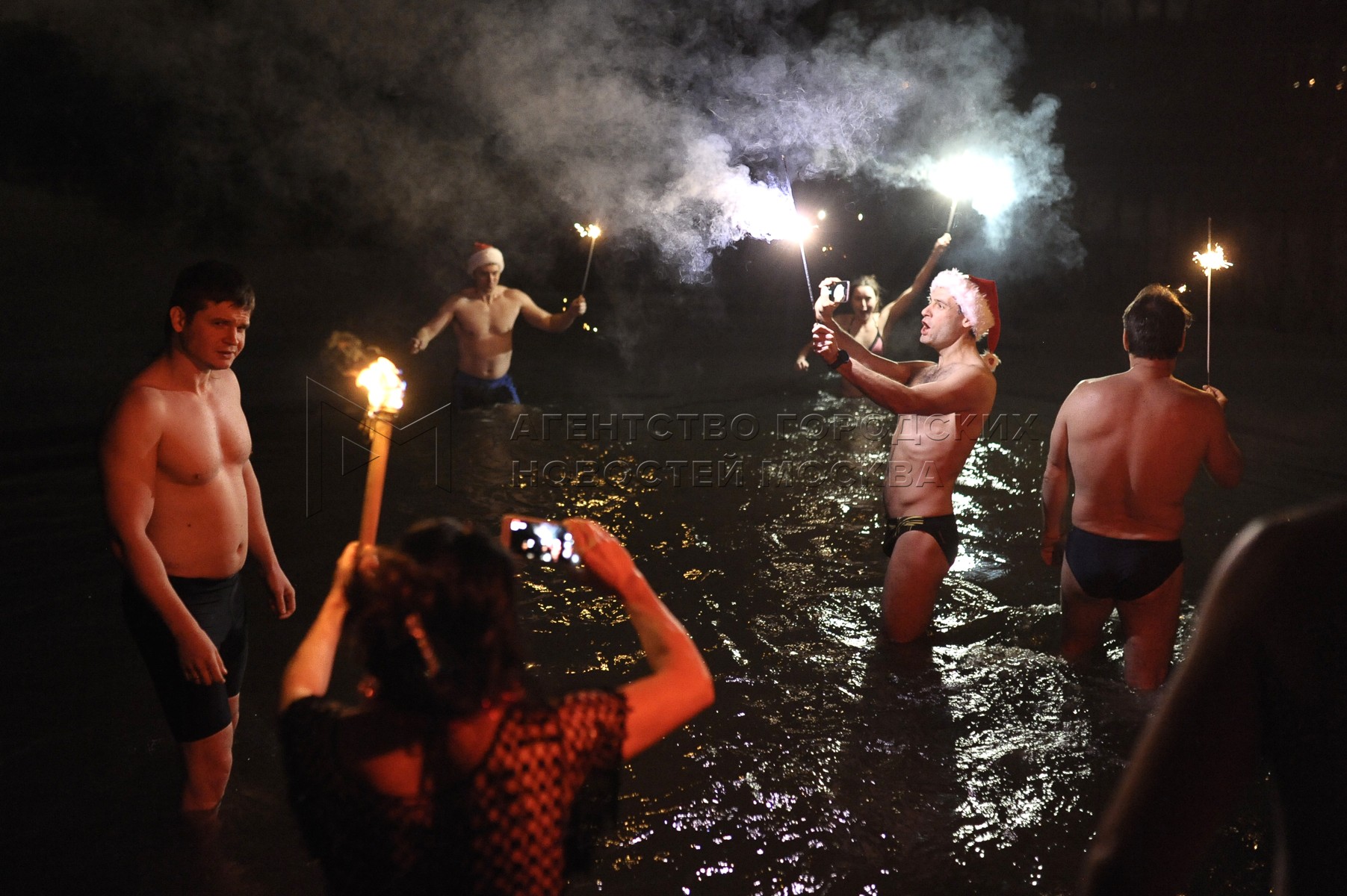 Встреча Нового года клубом «Моржи столицы» и праздничный заплыв в Москве-реке в р...