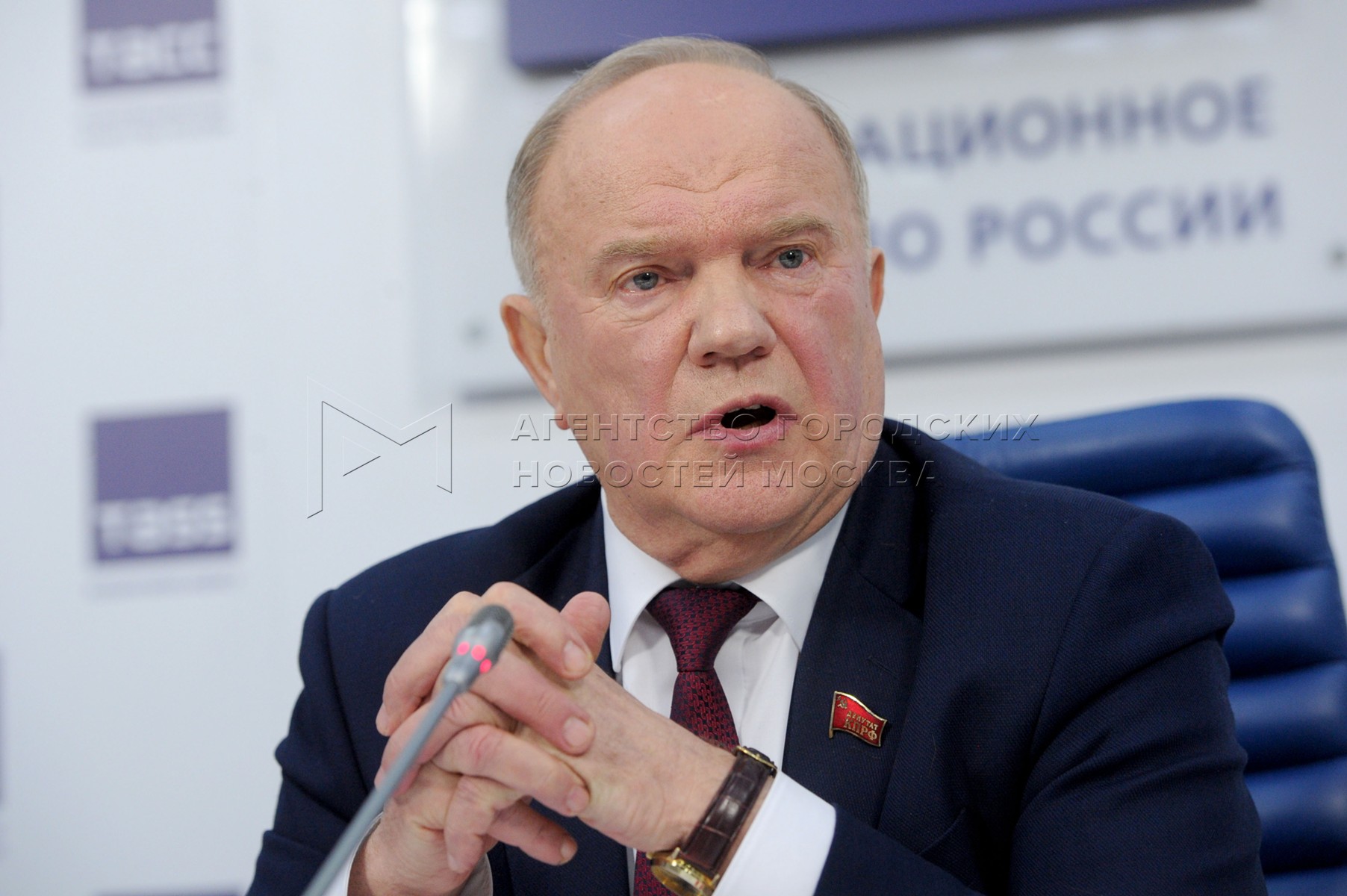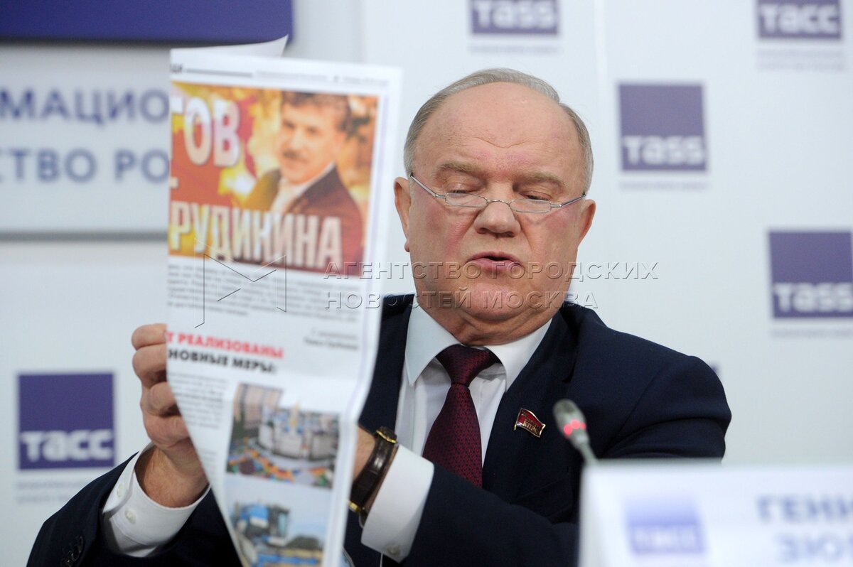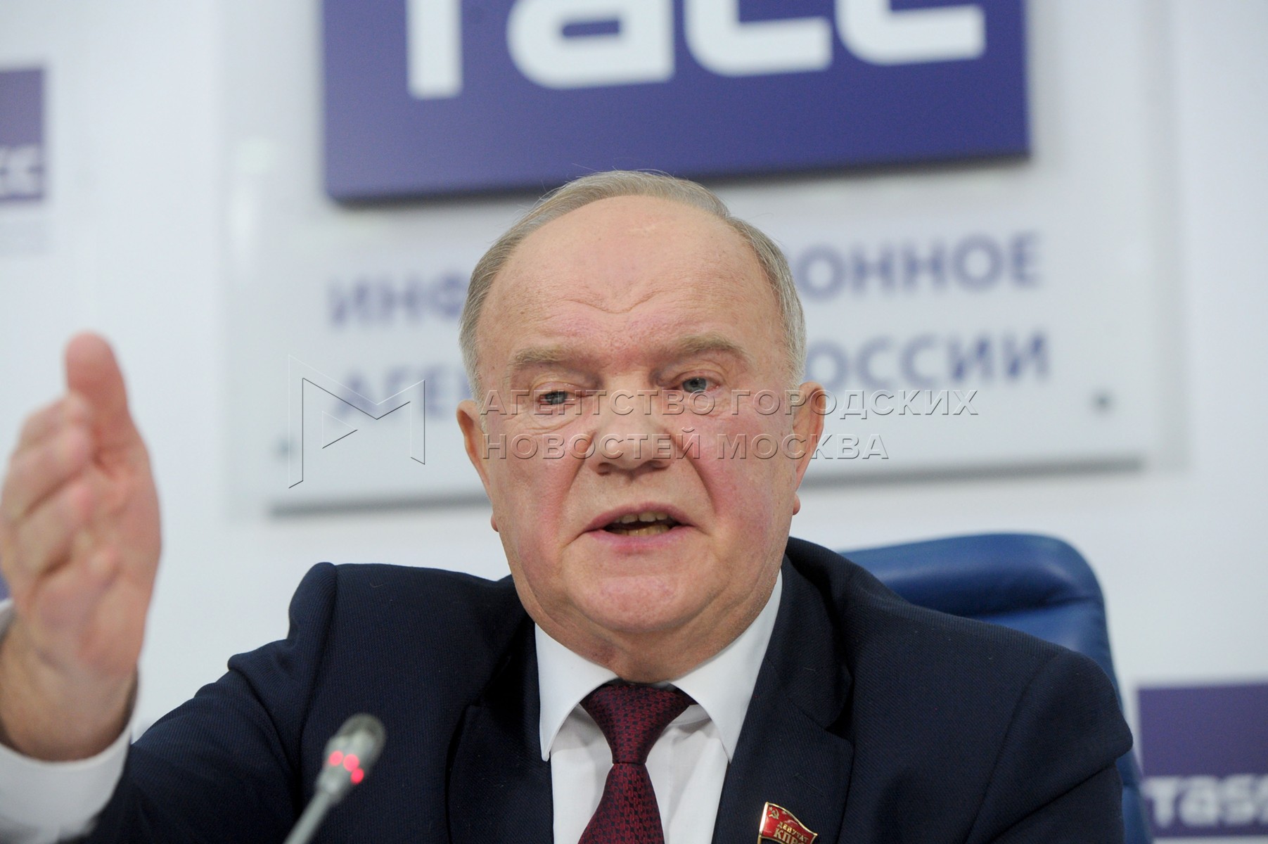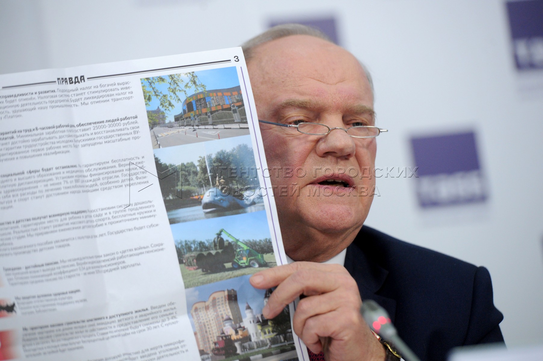 Лидер КПРФ Геннадий Зюганов на пресс-конференции во время представления предвыбор...