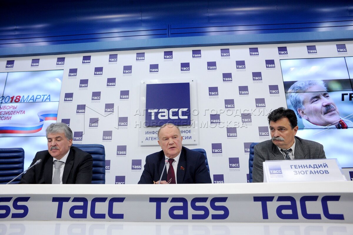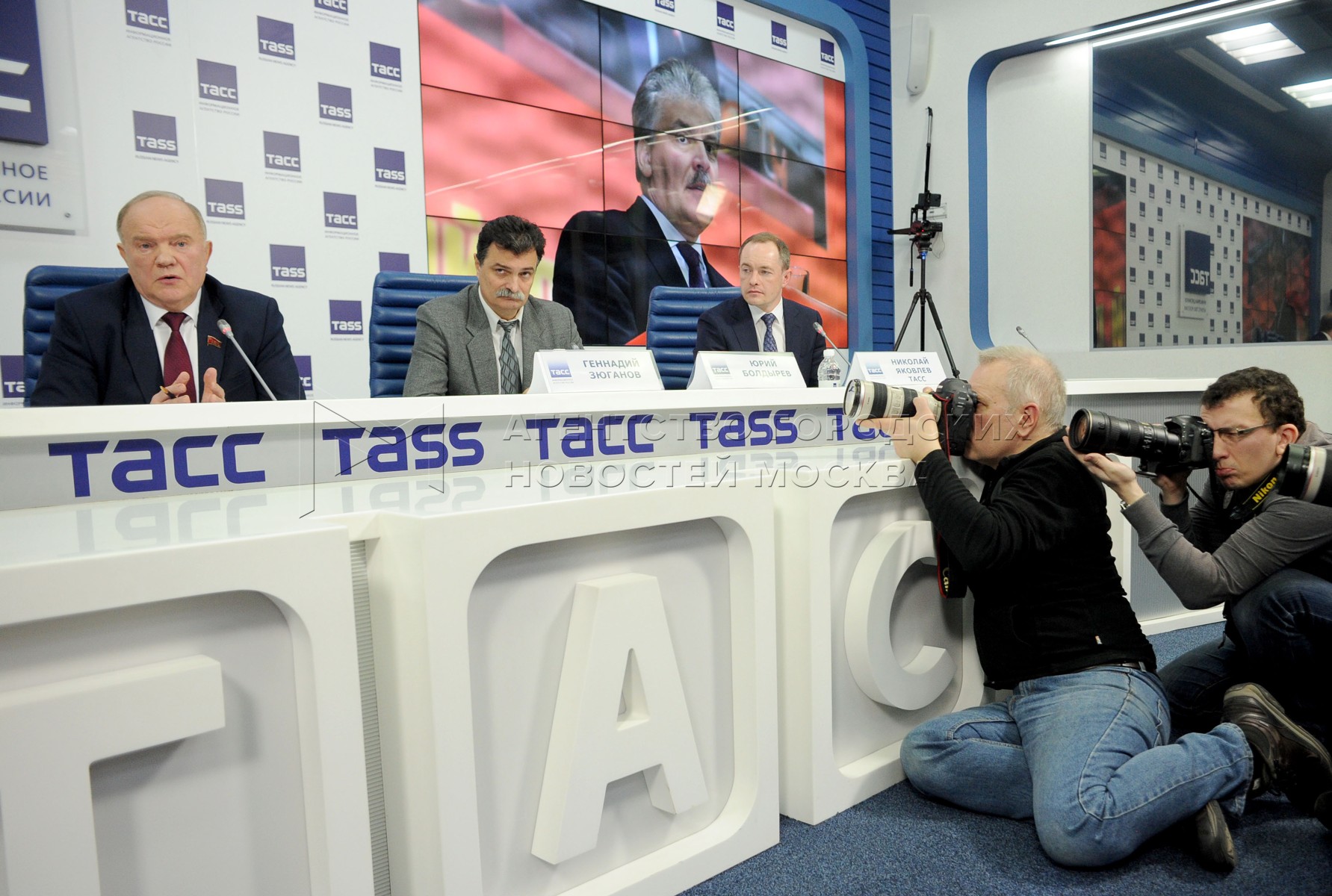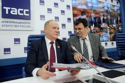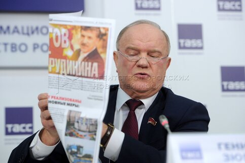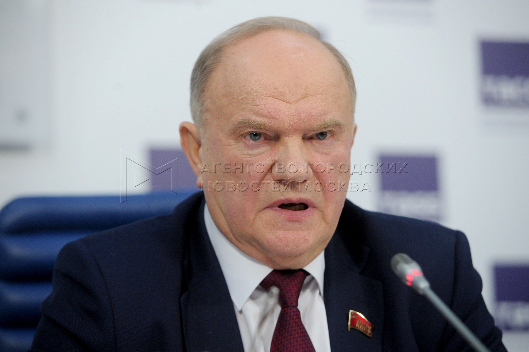 Лидер КПРФ Геннадий Зюганов на пресс-конференции во время представления предвыбор...
