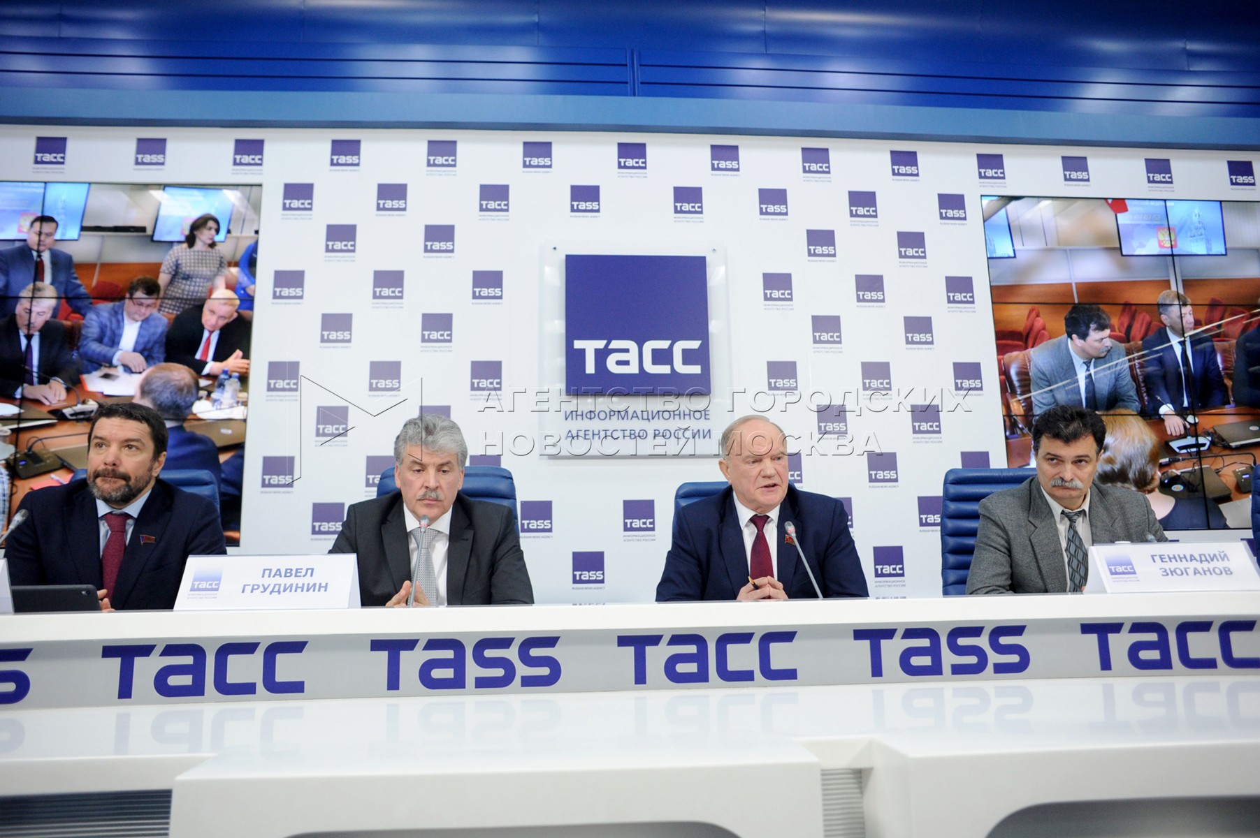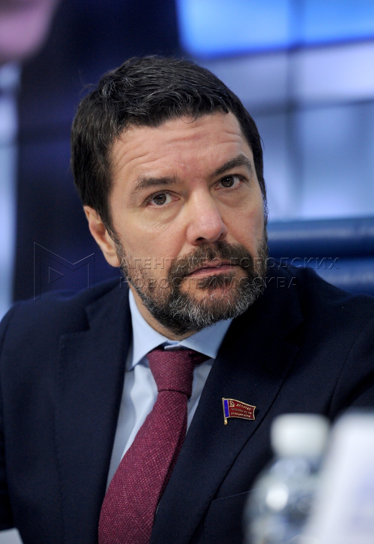 Депутат ГД РФ от КПРФ Александр Ющенко на пресс-конференции во время представлени...