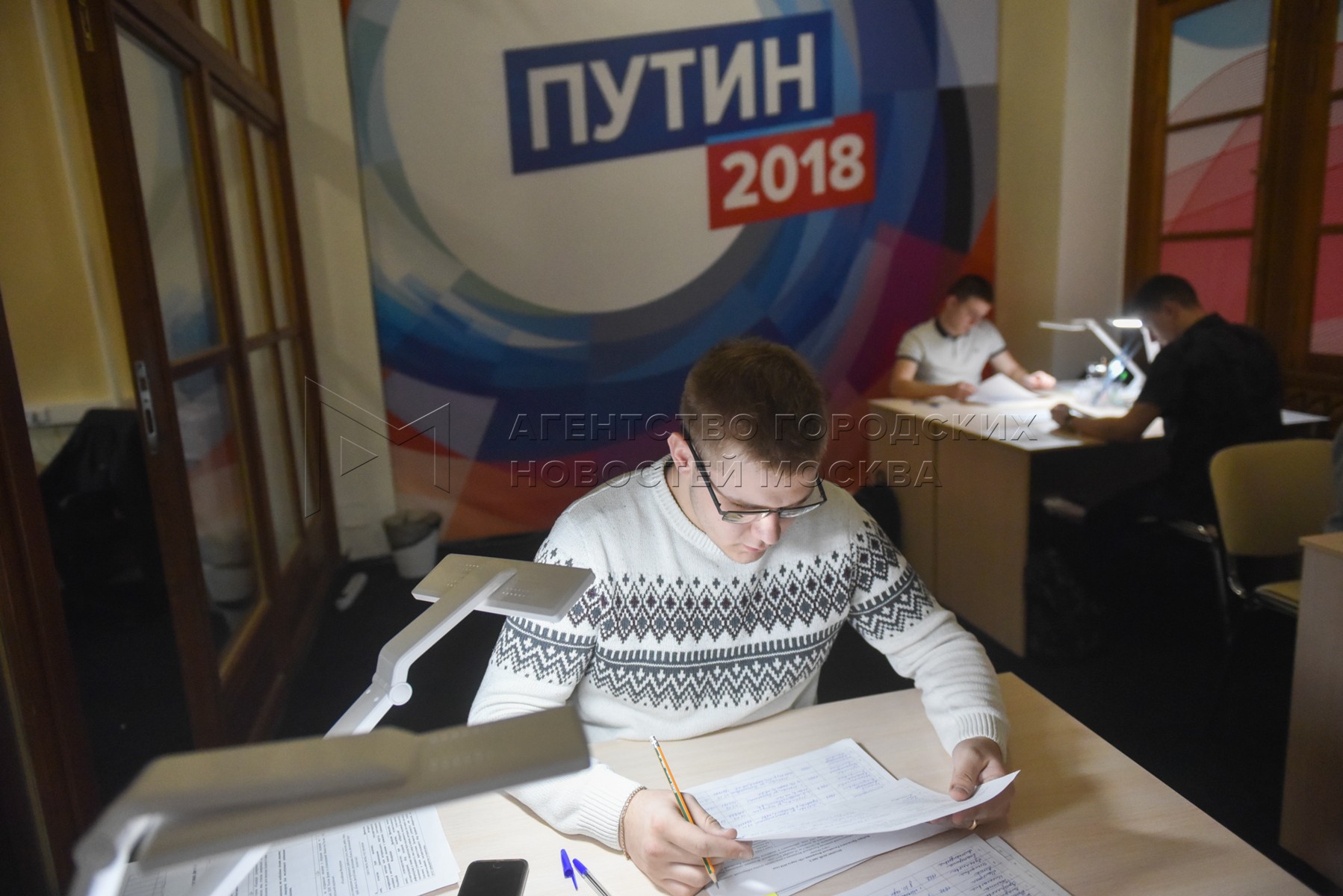 Работа избирательного штаба кандидата в президенты РФ В.Путина
