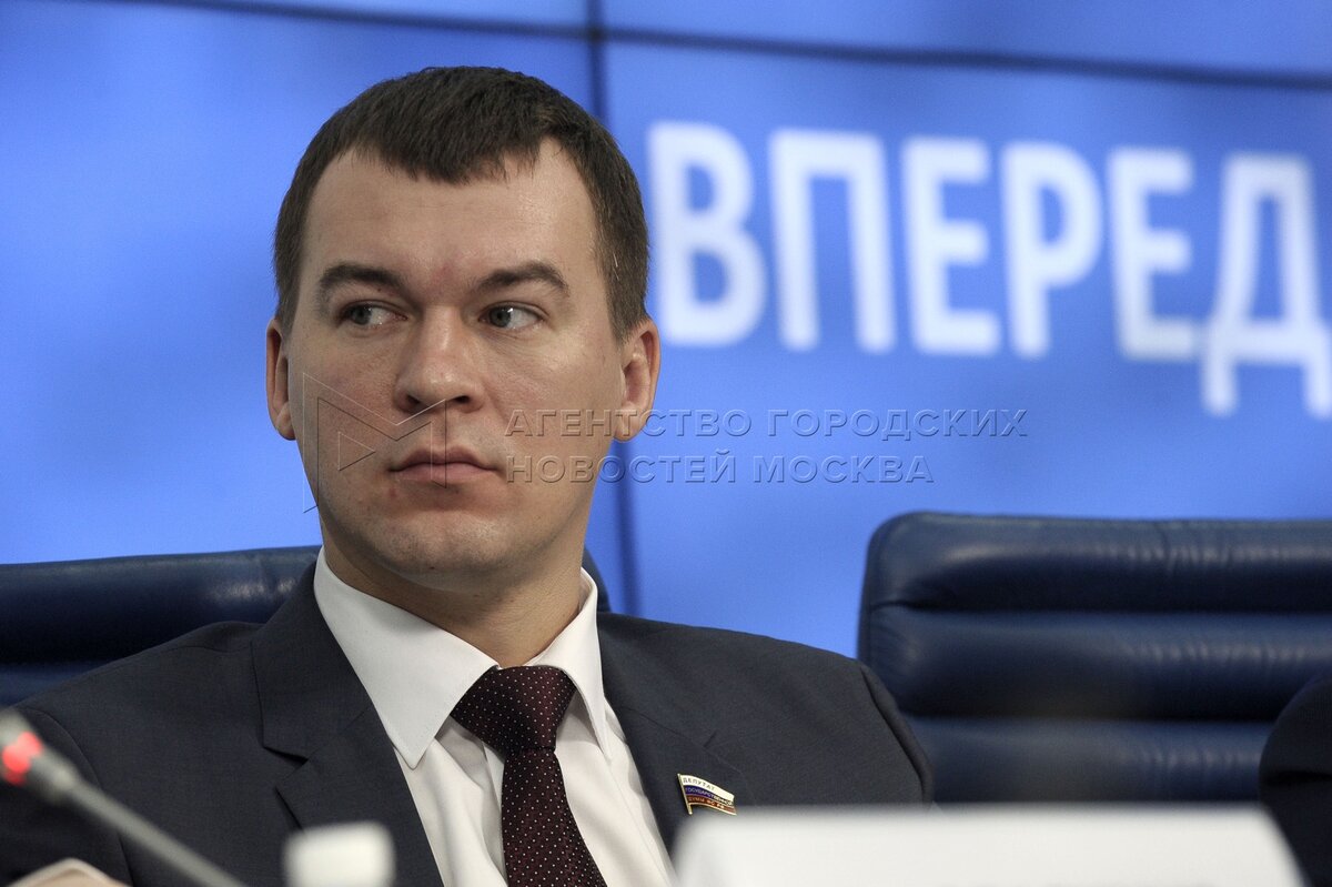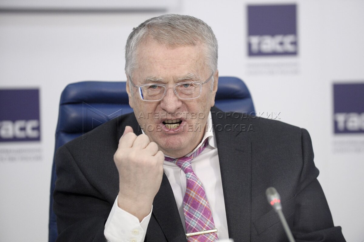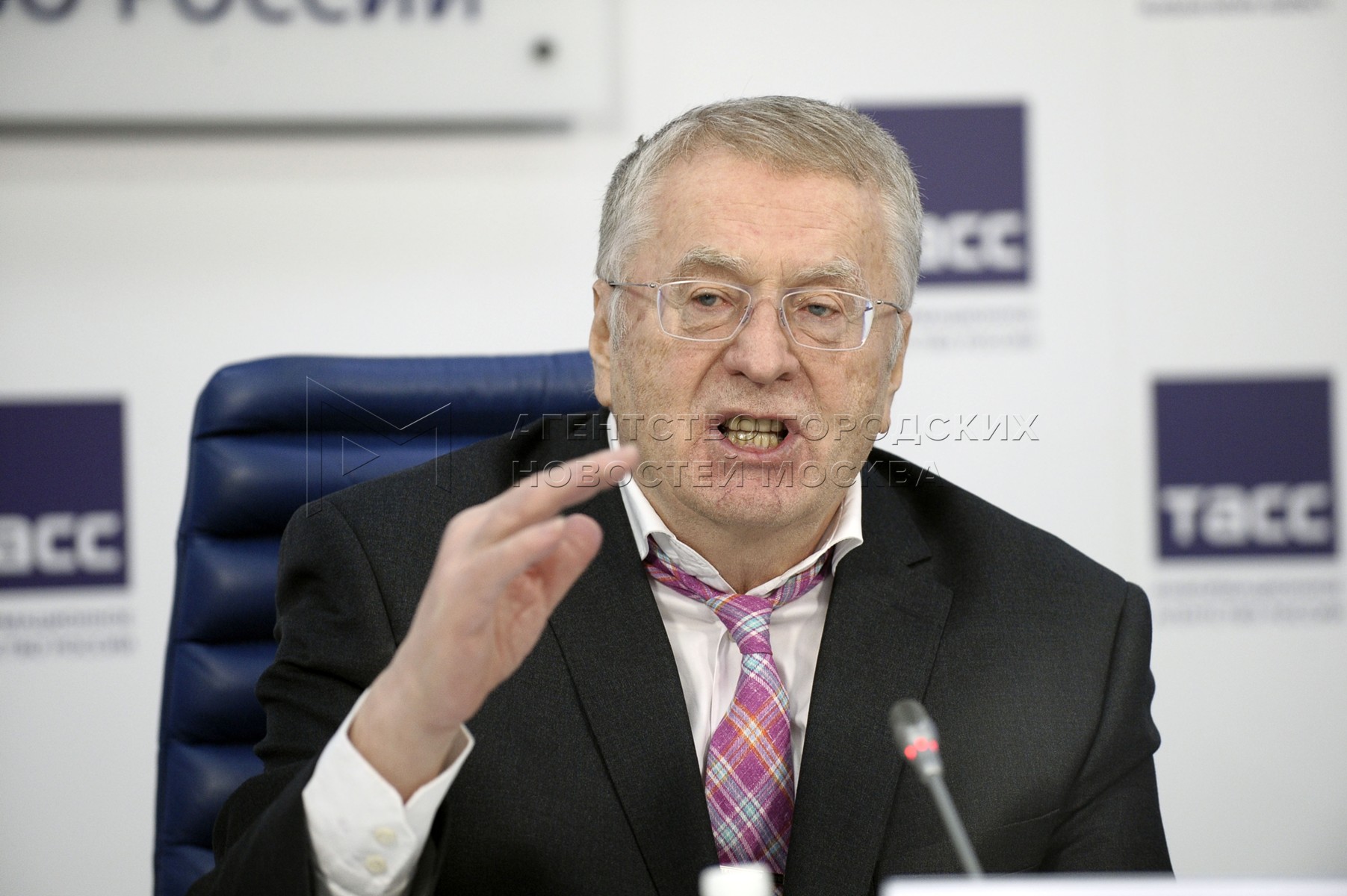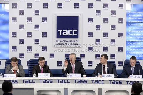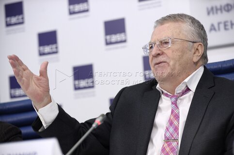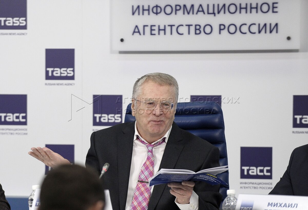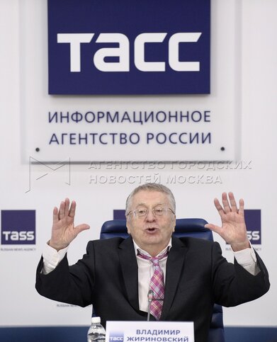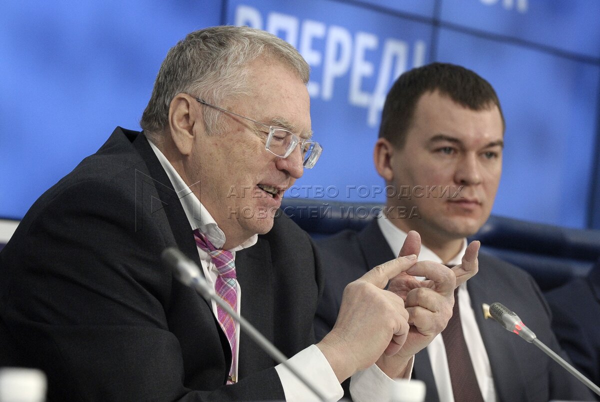 - Описание: Кандидат на пост президента РФ от партии ЛДПР Владимир Жириновский во время пресс-конференции и презентации предвыборной программы «Мощный рывок вперед»