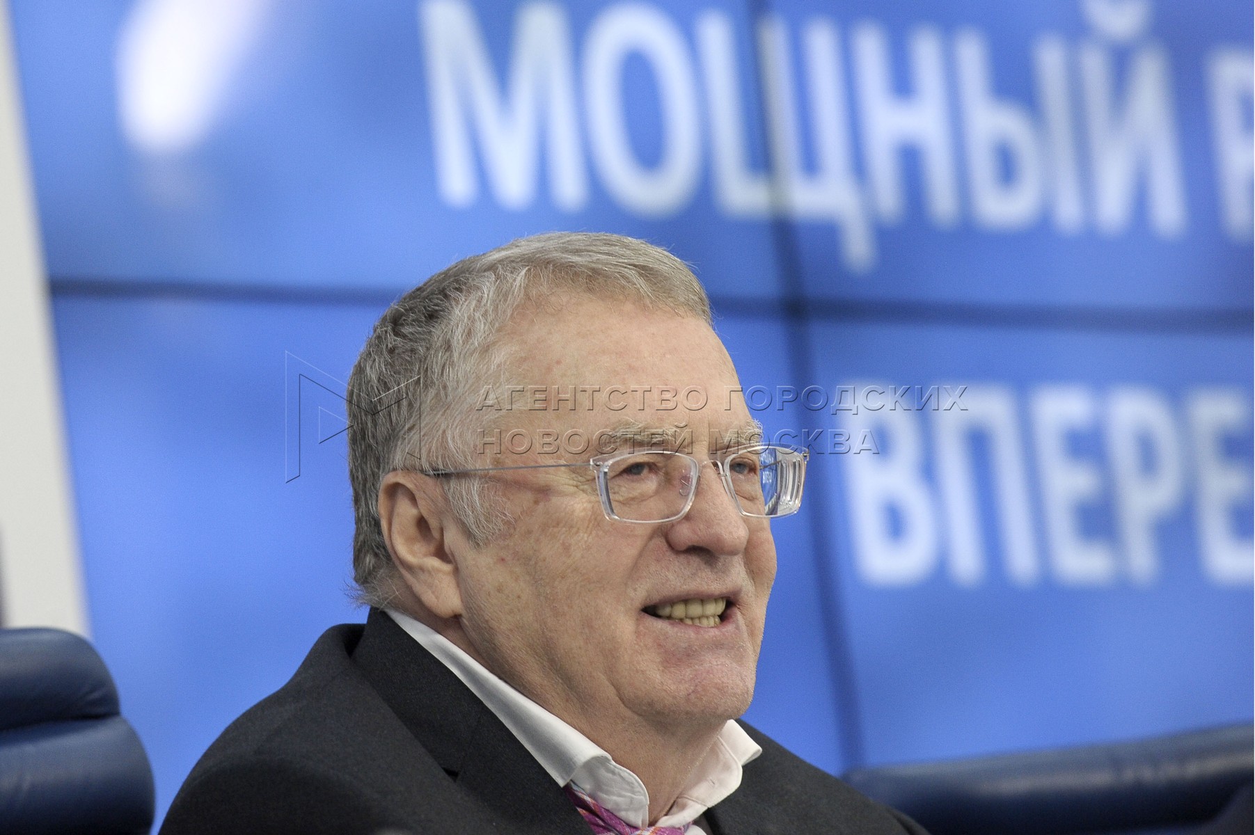 Кандидат на пост президента РФ от партии ЛДПР Владимир Жириновский во время пресс-конференции и презентации предвыборной программы «Мощный рывок вперед»