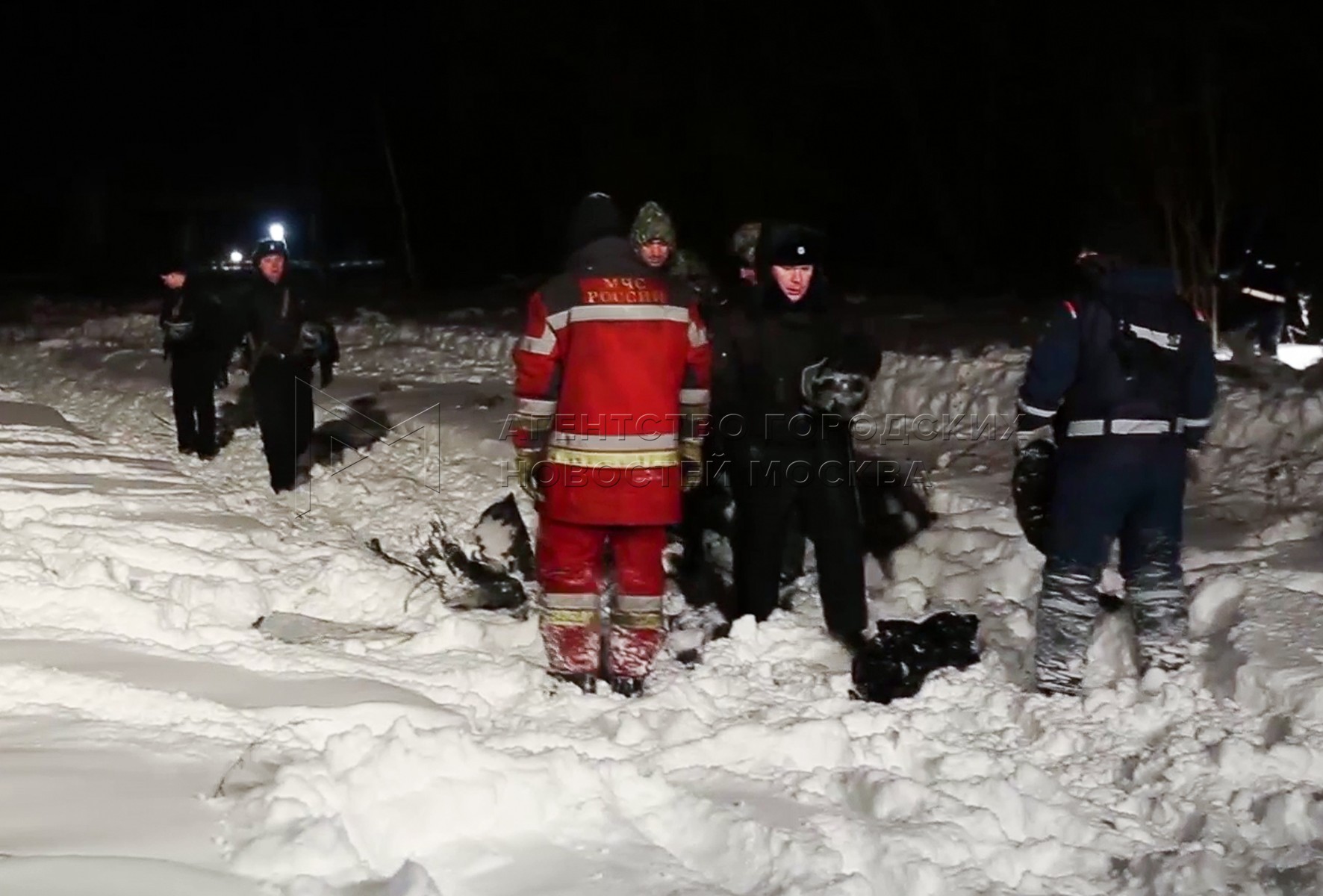 Ночные поисковые работы на месте крушения самолета АН-148 в Подмосковье