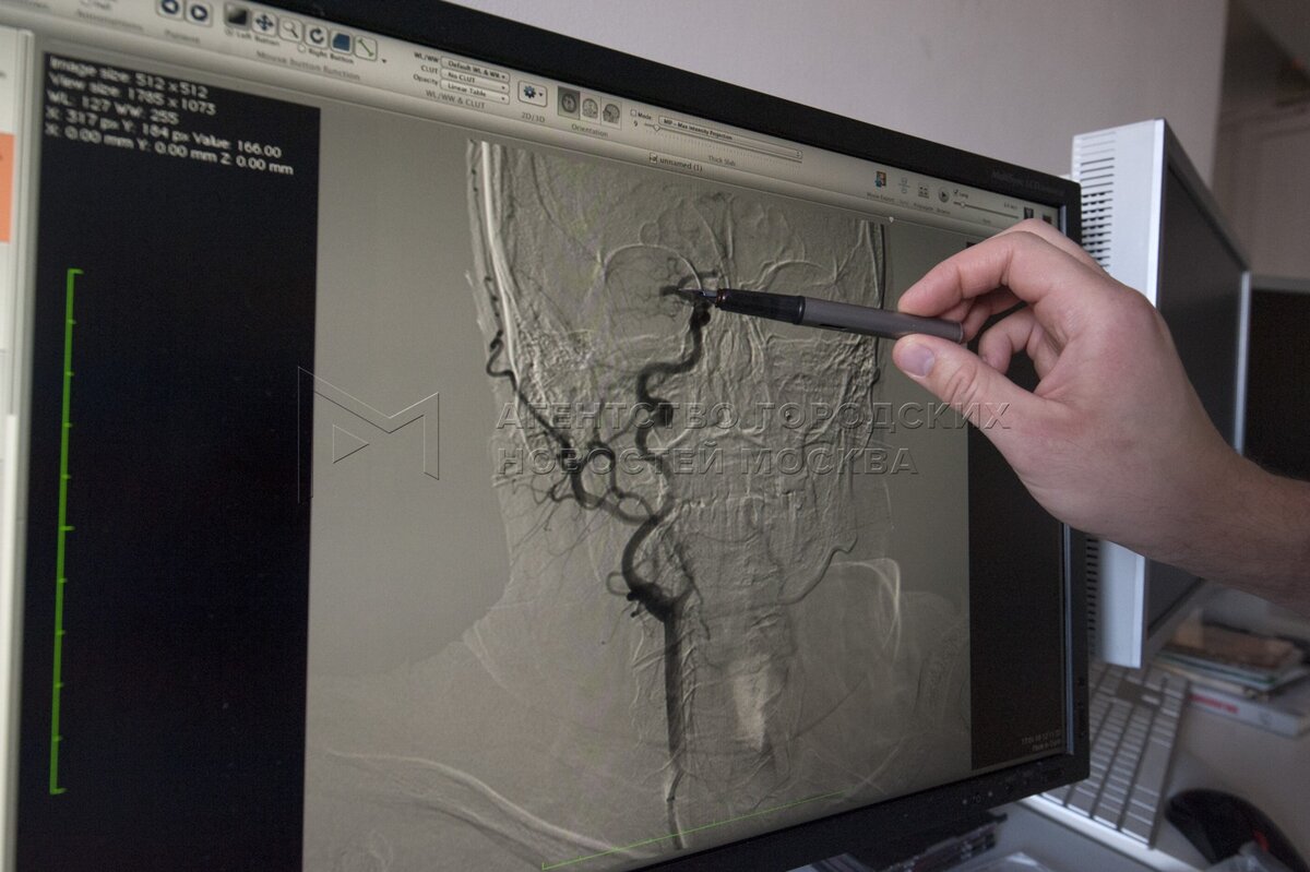 На мониторе снимок сосудов головного мозга