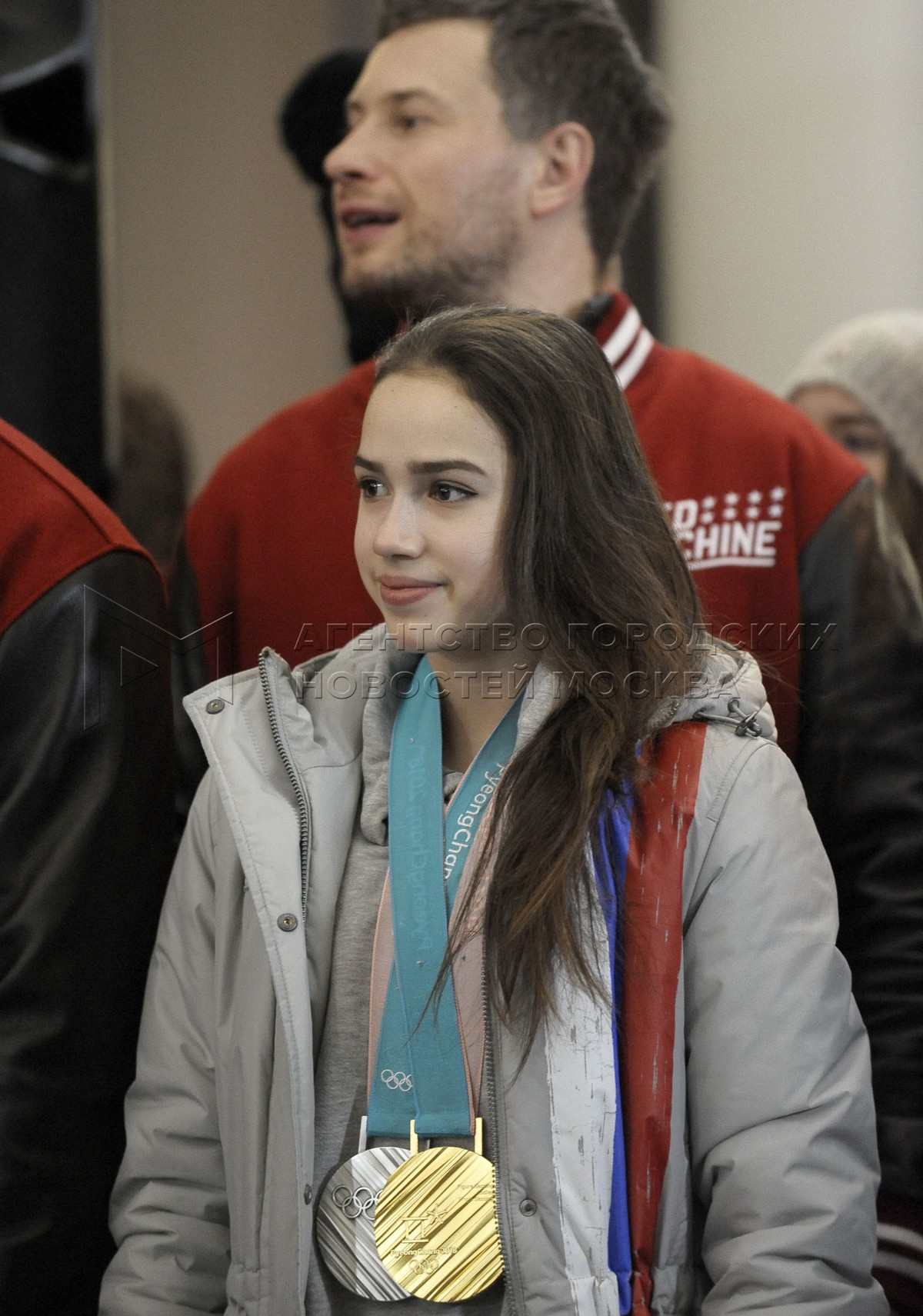 • Описание: Фигуристка Алина Загитова во время встречи в аэропорту Шереметьево российских спортсменов, вернувшихся с XXIII зимних Олимпийских игр в Пхенчхане.
