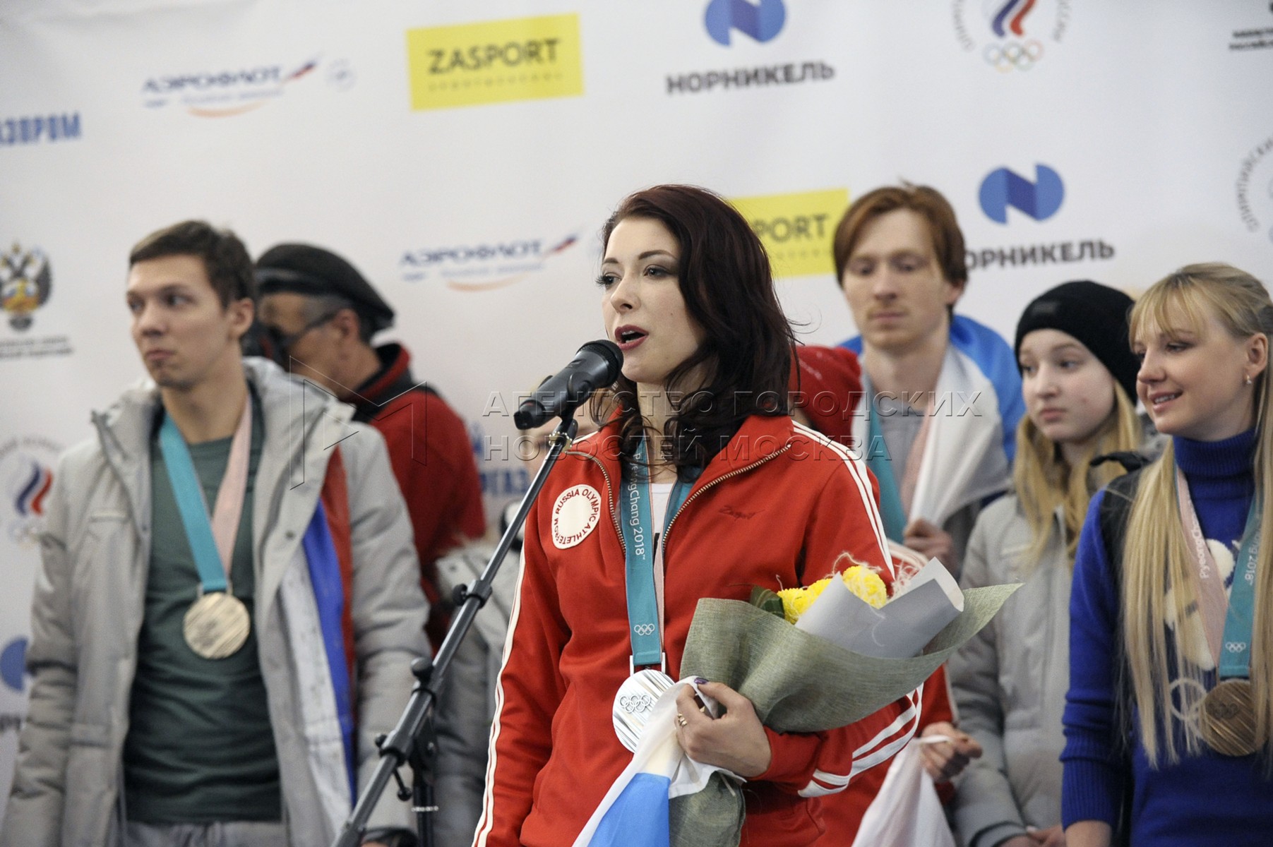 • Заголовок: Встреча в аэропорту Шереметьево российских спортсменов, вернувшихся с зимней Олимпиады в Пхенчхане