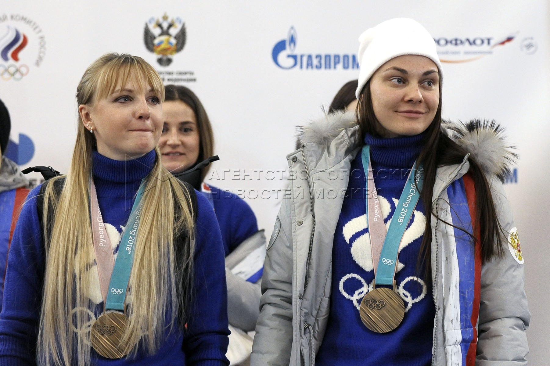 • Заголовок: Встреча в аэропорту Шереметьево российских спортсменов, вернувшихся с зимней Олимпиады в Пхенчхане