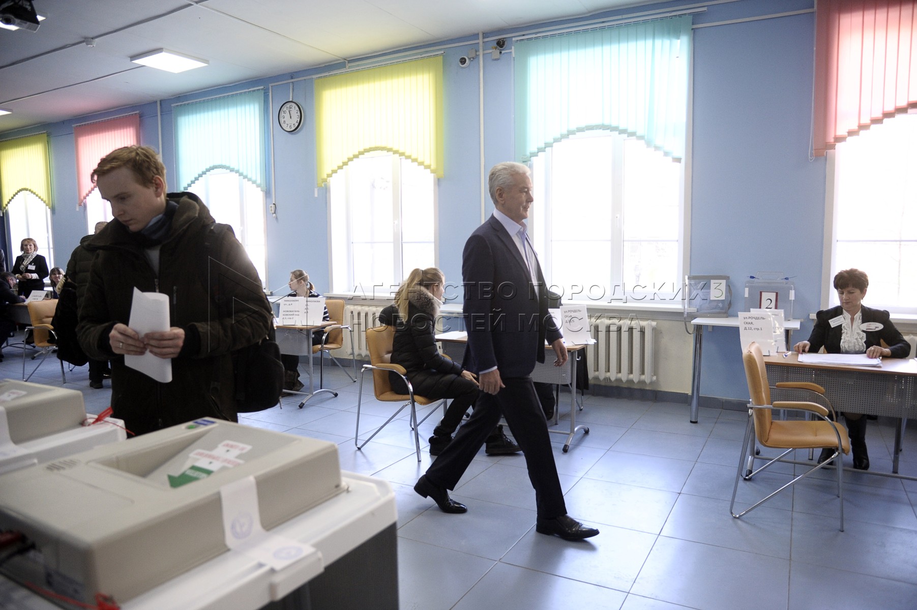Мэр Москвы Сергей Собянин на выборах президента РФ, на избирательном участке, рас...