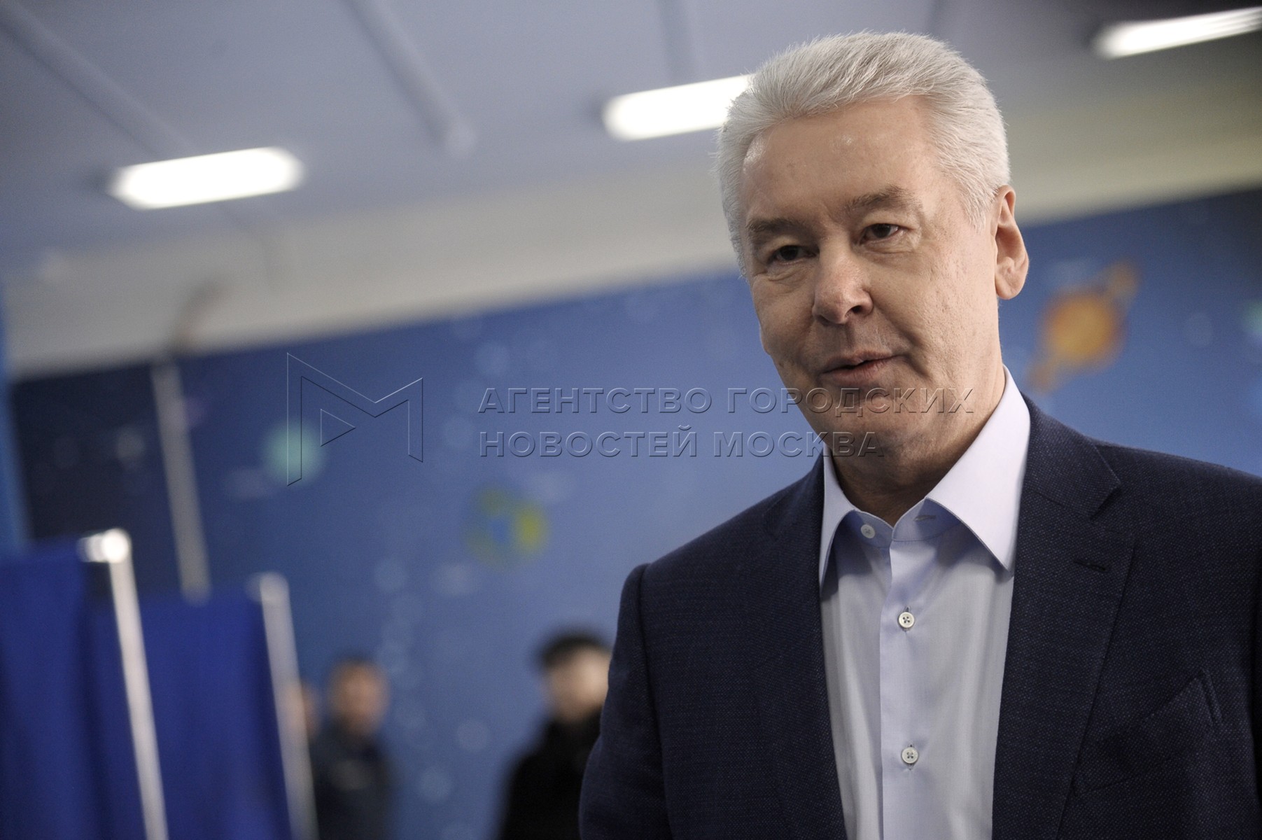 Мэр Москвы Сергей Собянин на выборах президента РФ, на избирательном участке, рас...