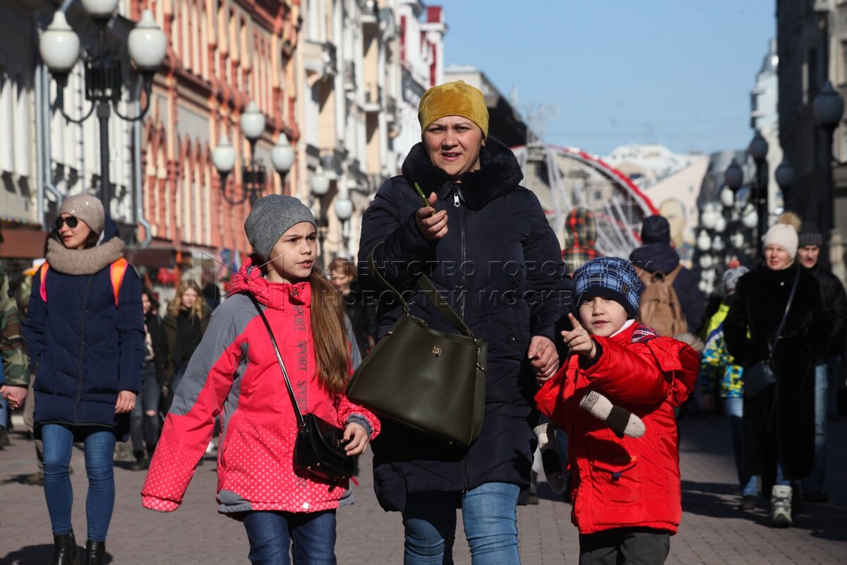 Солнечная погода в Москве 24 марта на ул. Арбат.