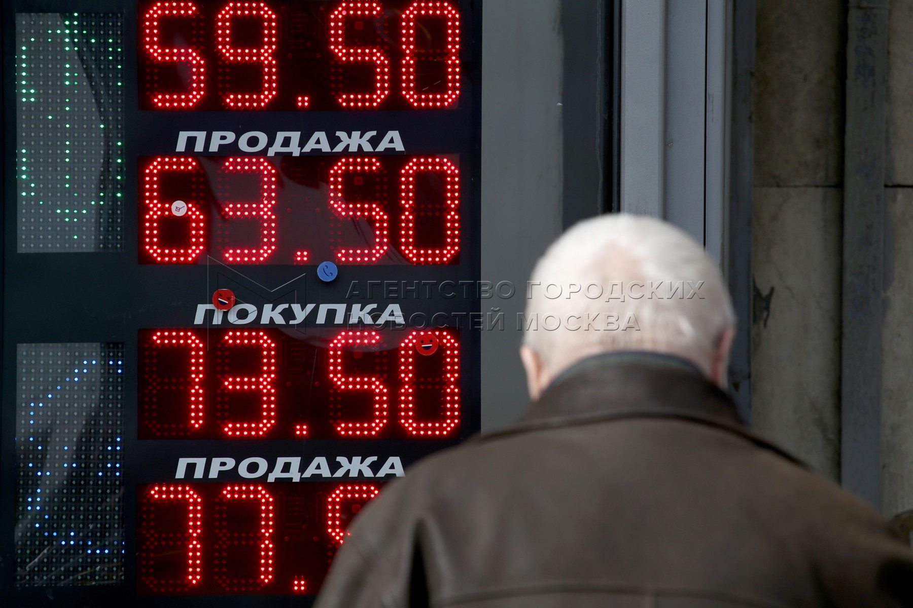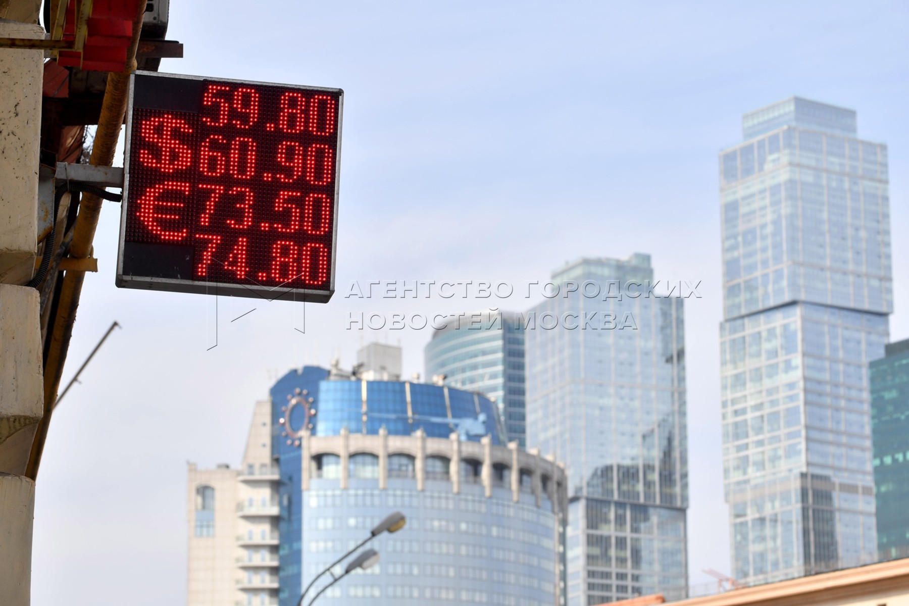 Автор: Никеричев Андрей. Табло обменных пунктов Москвы с курсами валют на 10 апре...