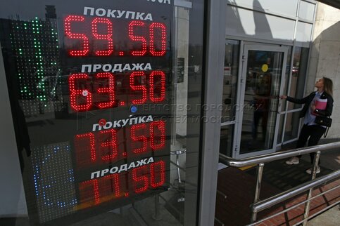 Автор: Киселев Сергей. Табло обменных пунктов Москвы с курсами валют на 10 апреля...