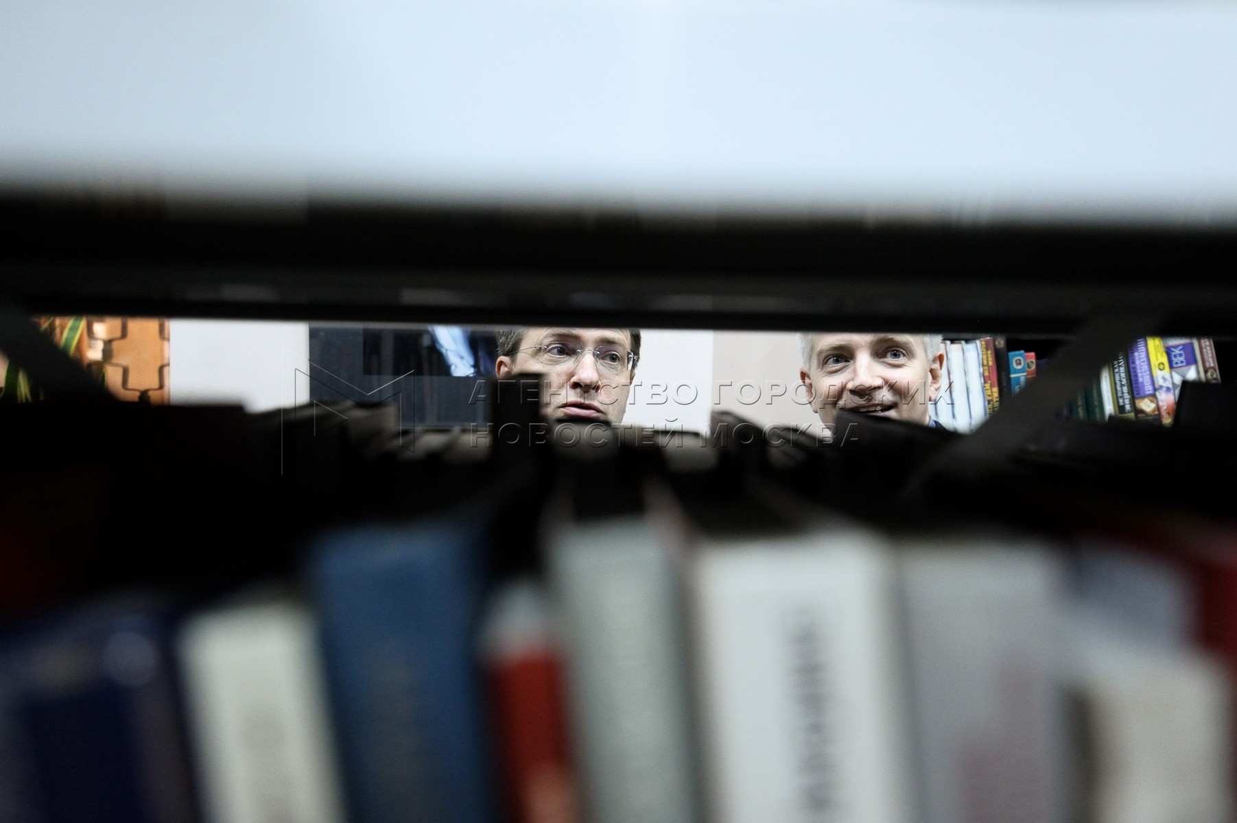 Министр культуры РФ Владимир Мединский (слева) во время акции «Библионочь-2018» в...