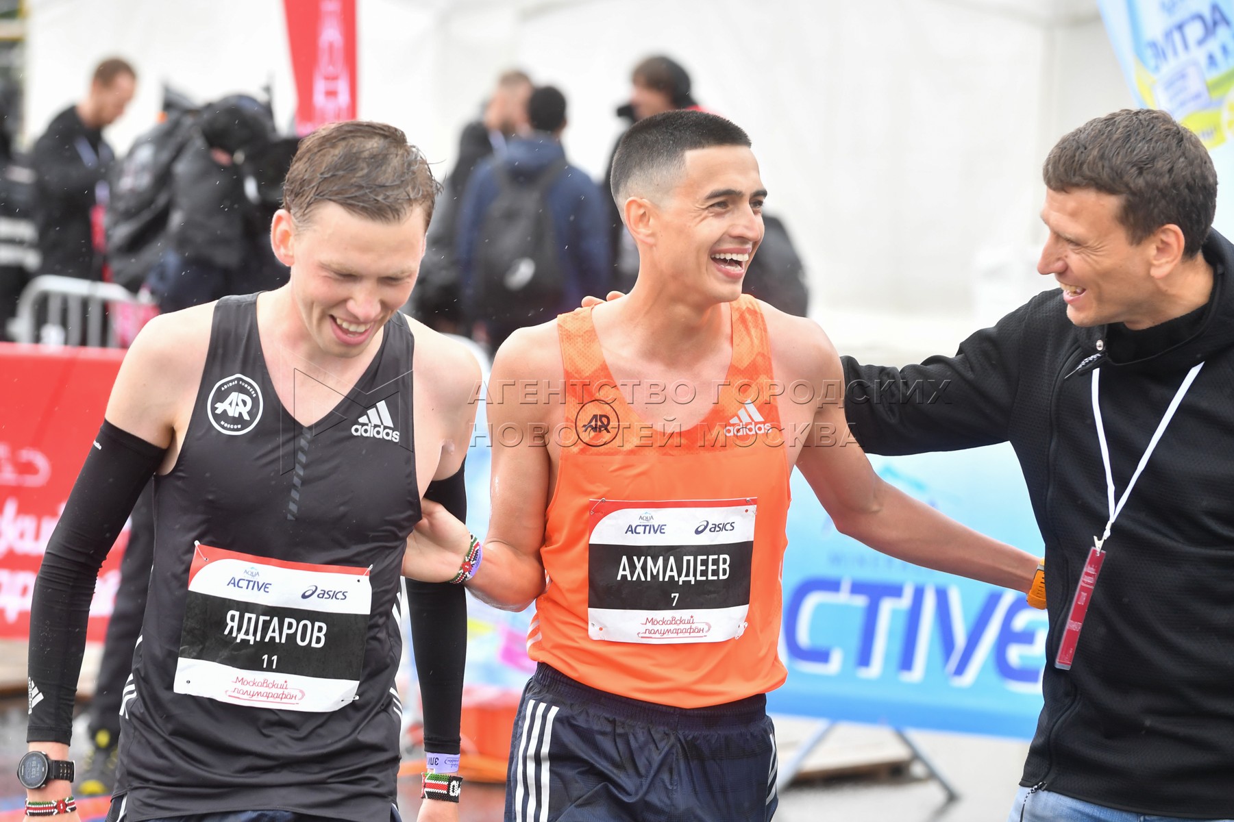 Директор Московского Марафона Дмитрий Тарасов (слева) во время награждения побед...