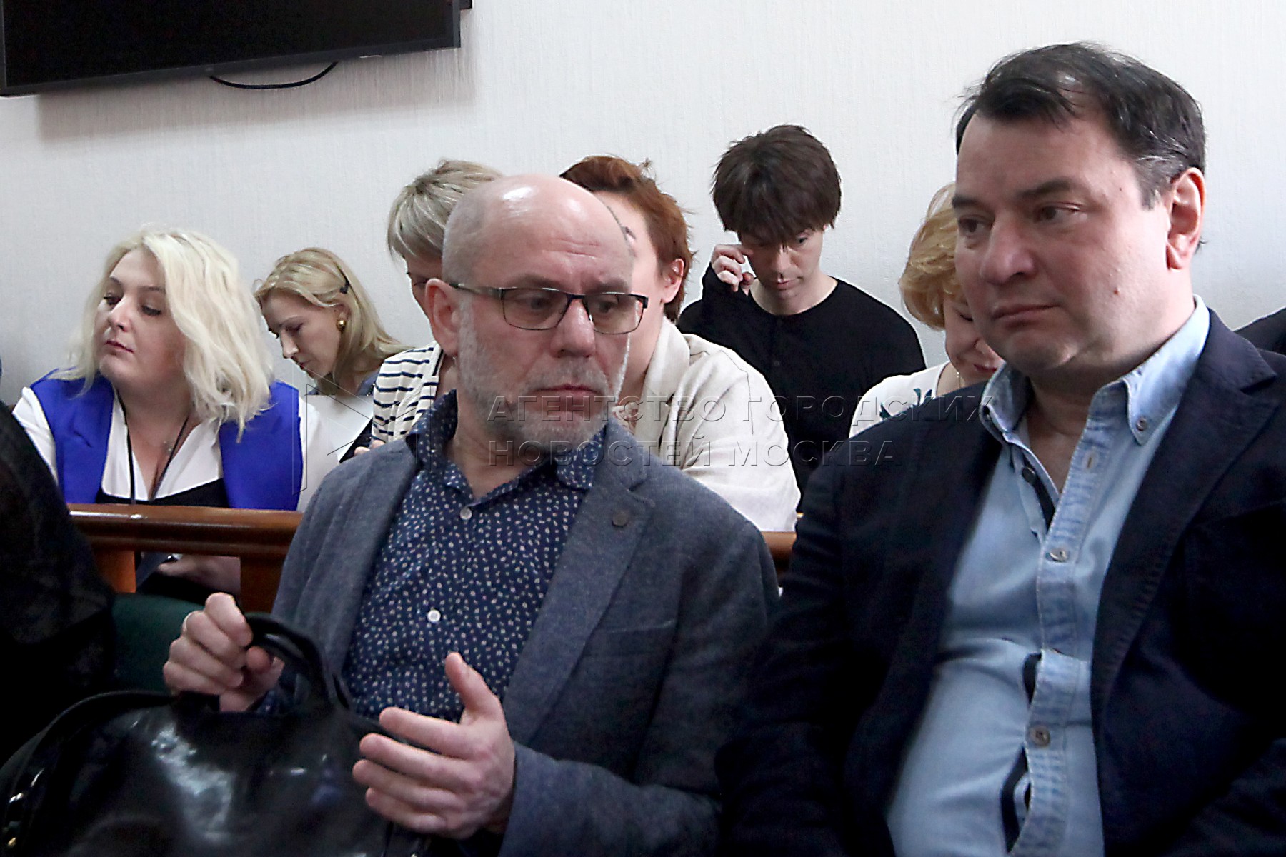 - Описание: Бывший генеральный продюсер компании «Седьмая студия», бывший генеральный директор театра «Гоголь-центр» Алексей Малобродский (слева), обвиняемый в хищении бюджетных средств и режиссер, бывший генеральный директор компании «Седьмая студия» Юрий Итин, обвиняемый в мошенничестве в особо крупном размере перед началом рассмотрения аппеляционной жалобы на продлении срока домашнего ареста, в Мосгорсуде.