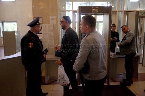 - Описание: Режиссер Кирилл Серебренников (справа), обвиняемый в мошенничестве в особо крупном размере, перед началом рассмотрения аппеляционной жалобы на продлении срока домашнего ареста, в Мосгорсуде.