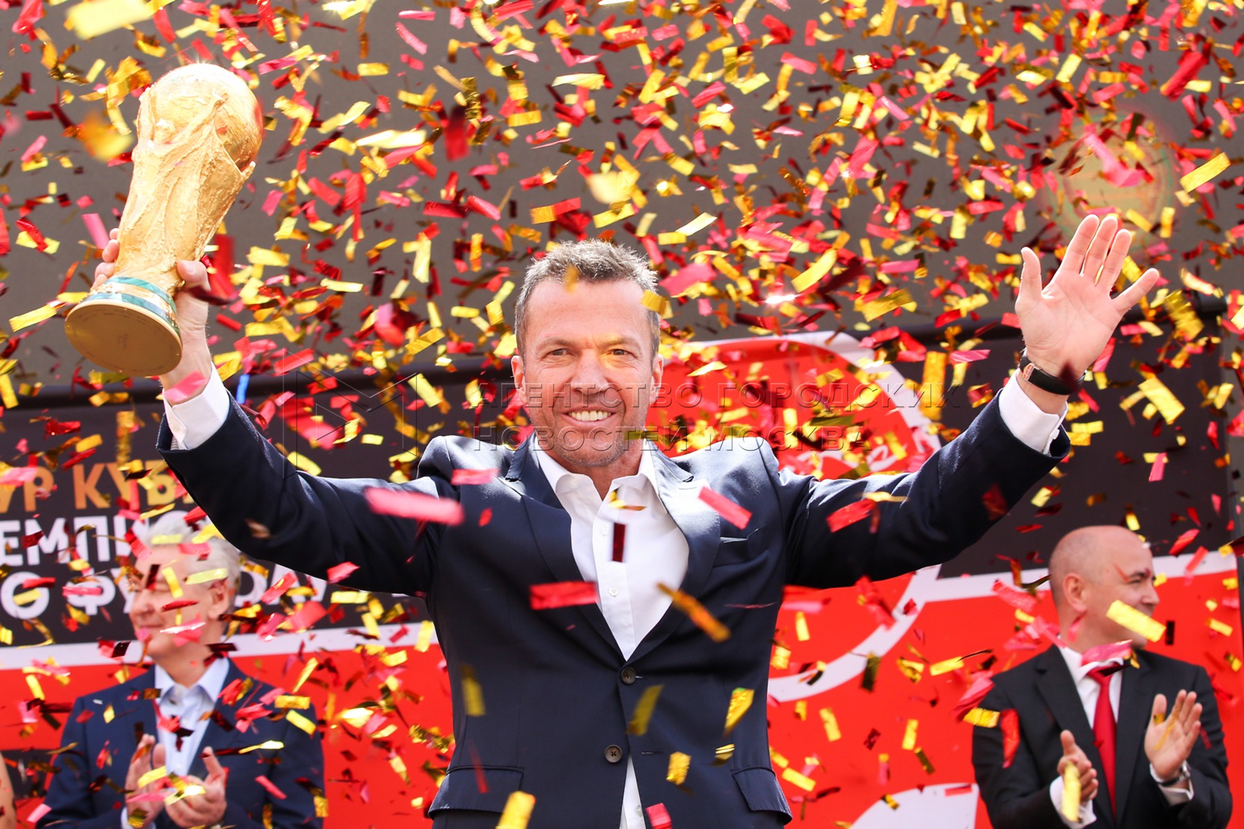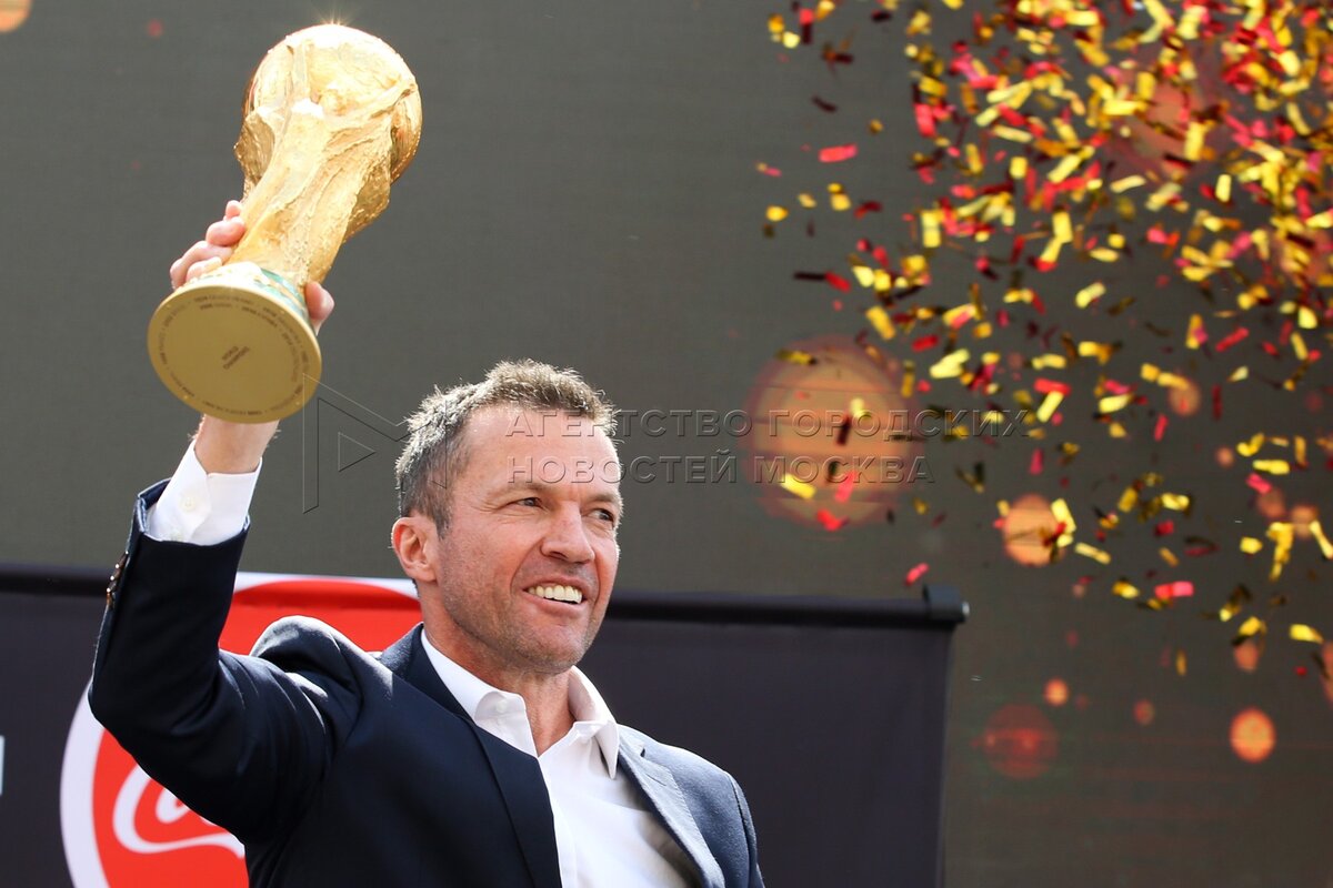Немецкий футболист Лотар Маттеус во время торжественной церемонии приветствия куб...