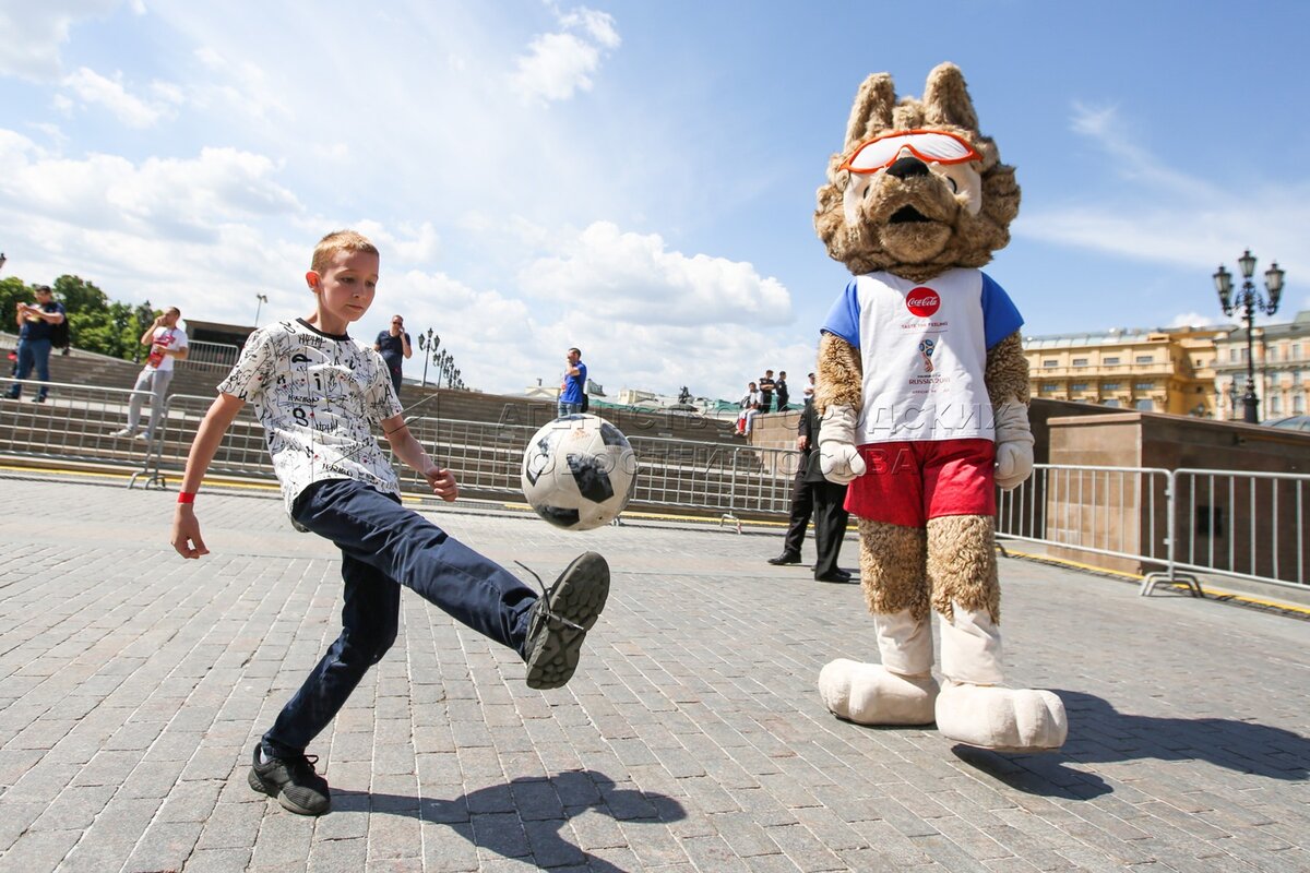 Церемония приветствия Кубка чемпионата мира по футболу на Манежной площади с учас...