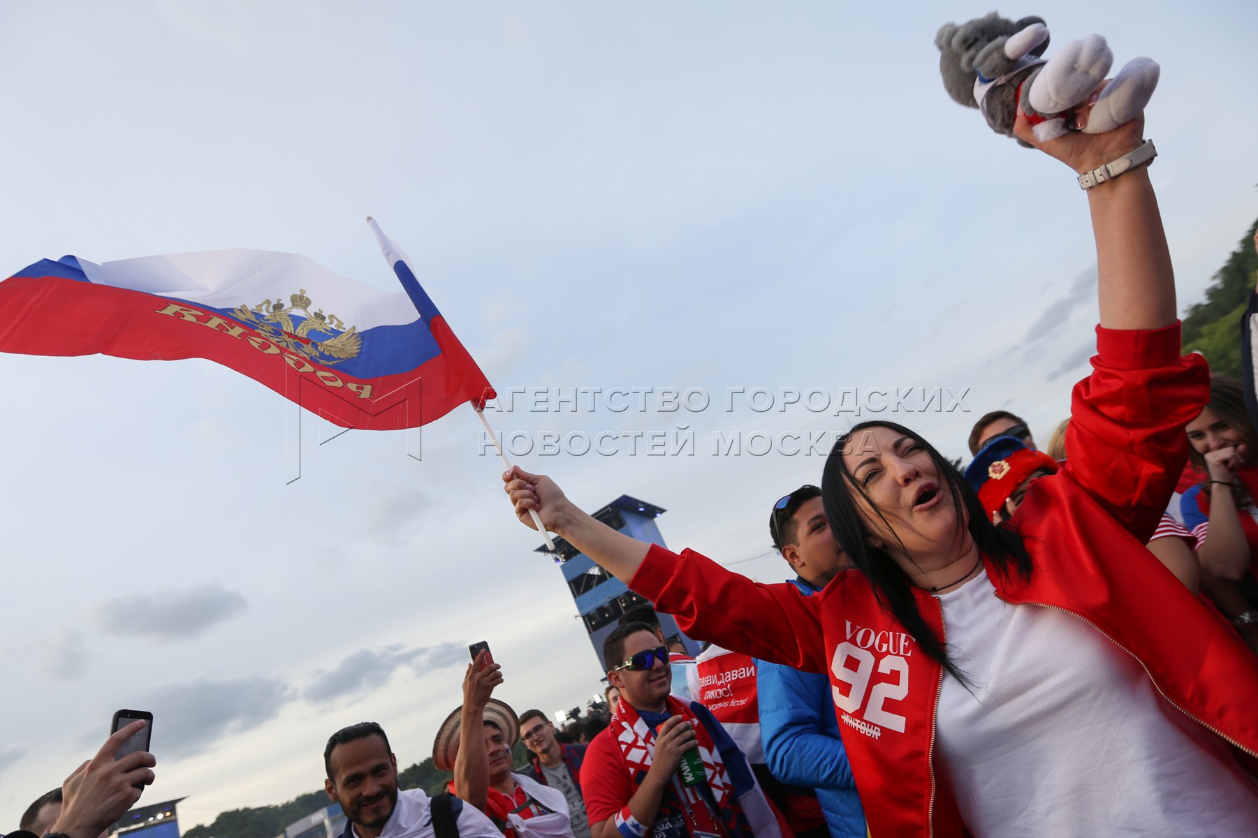 - Заголовок: Просмотр болельщиками на Воробьевых горах матча ЧМ-2018 между сборными России и Саудовской Аравии
