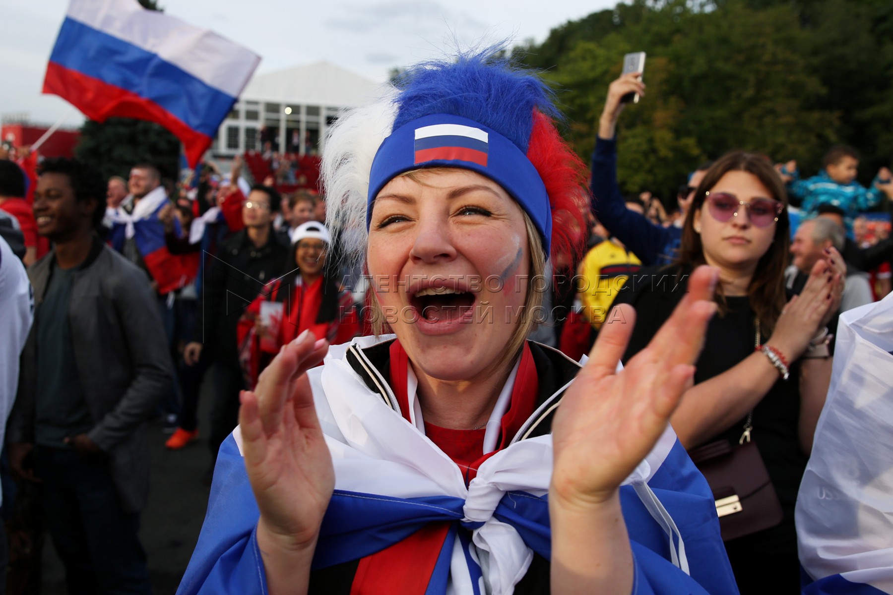 - Описание: Просмотр на фестивале болельщиков FIFA на Воробьевых горах матча чемпионата мира по футболу 2018 г. между сборными России и Саудовской Аравии.