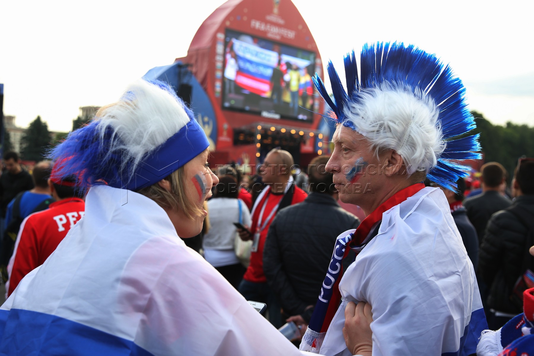 - Описание: Просмотр на фестивале болельщиков FIFA на Воробьевых горах матча чемпионата мира по футболу 2018 г. между сборными России и Саудовской Аравии.