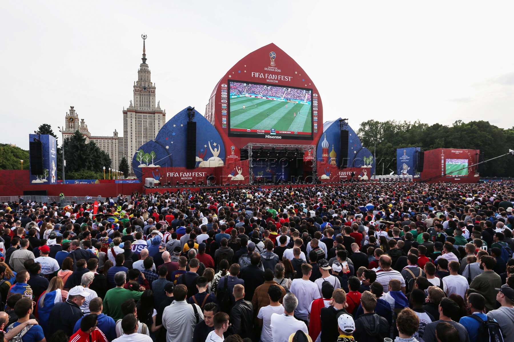 - Описание: Просмотр на фестивале болельщиков FIFA на Воробьевых горах матча чемпионата мира по футболу 2018 г. между сборными России и Саудовской Аравии.